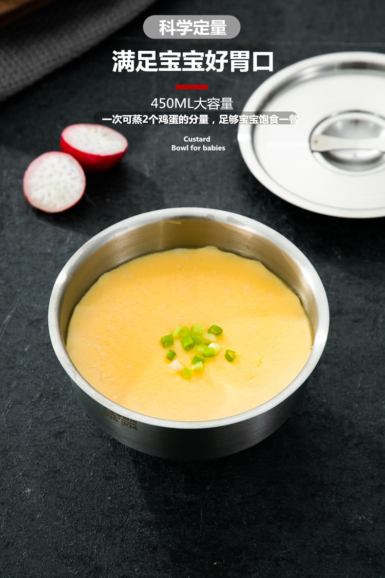 婴儿辅食蒸蛋碗304不锈钢加厚带盖 蒸鸡蛋羹家用炖盅专用碗 English | 投诉
