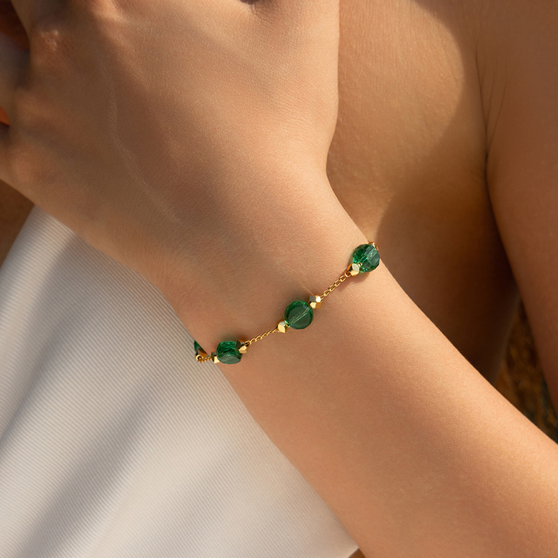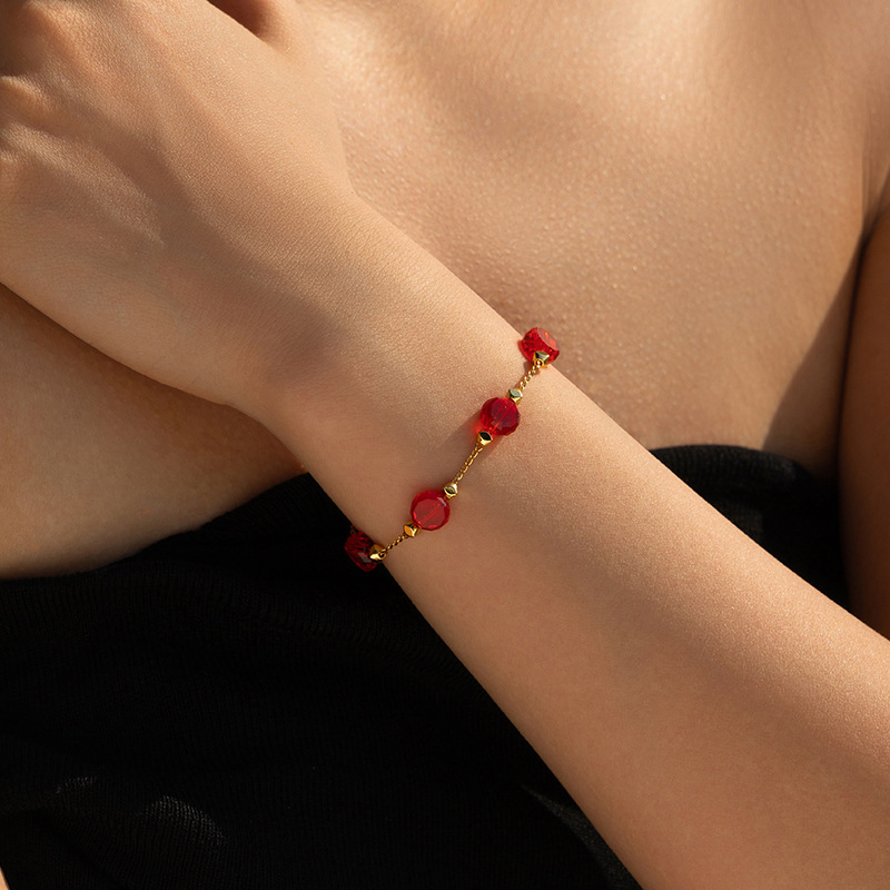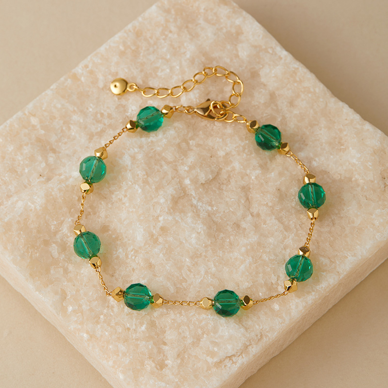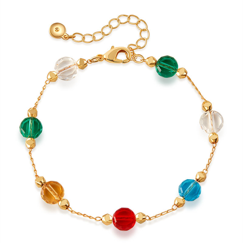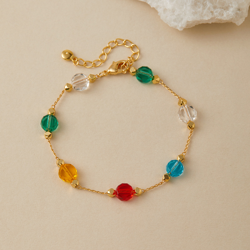 欧美ins风彩色玻璃钻手链小清新INS自然简约款 小众多巴胺手工链