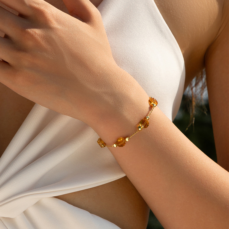 欧美ins风彩色玻璃钻手链小清新INS自然简约款 小众多巴胺手工链 投诉