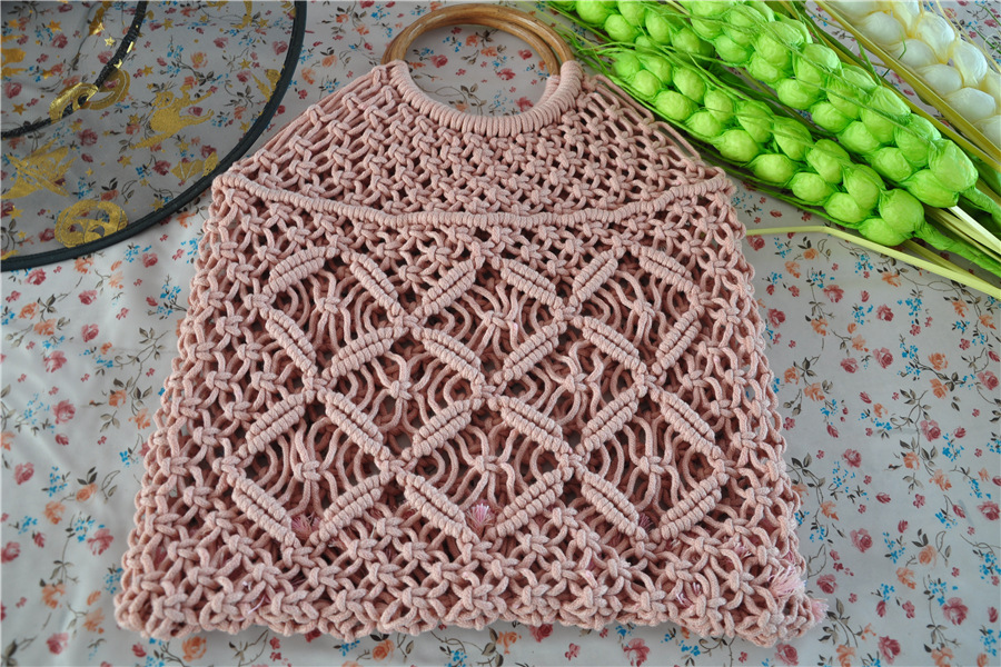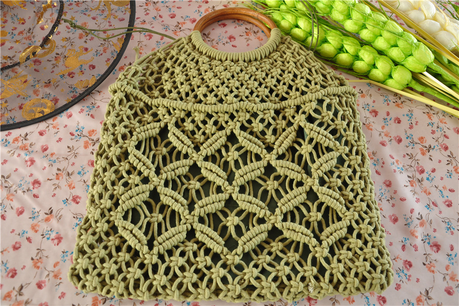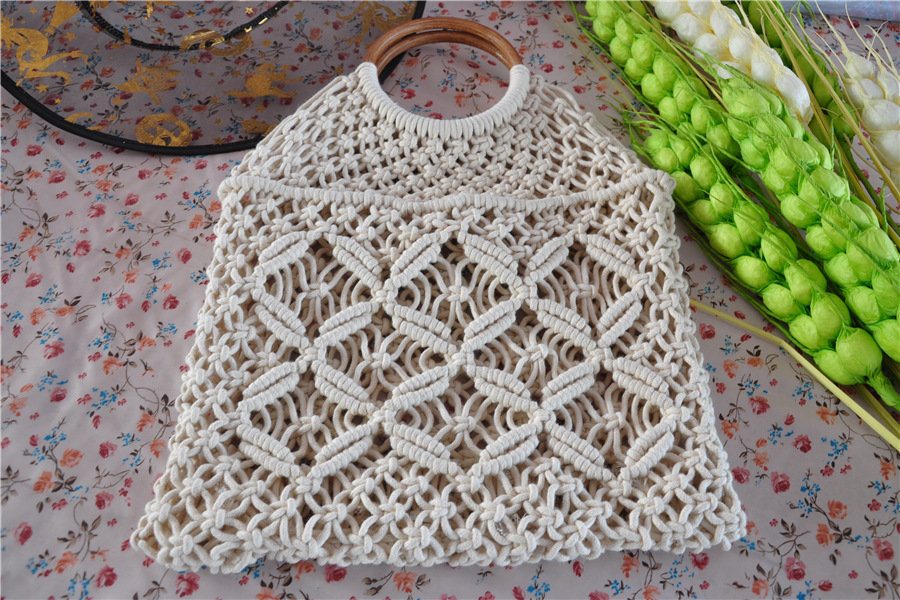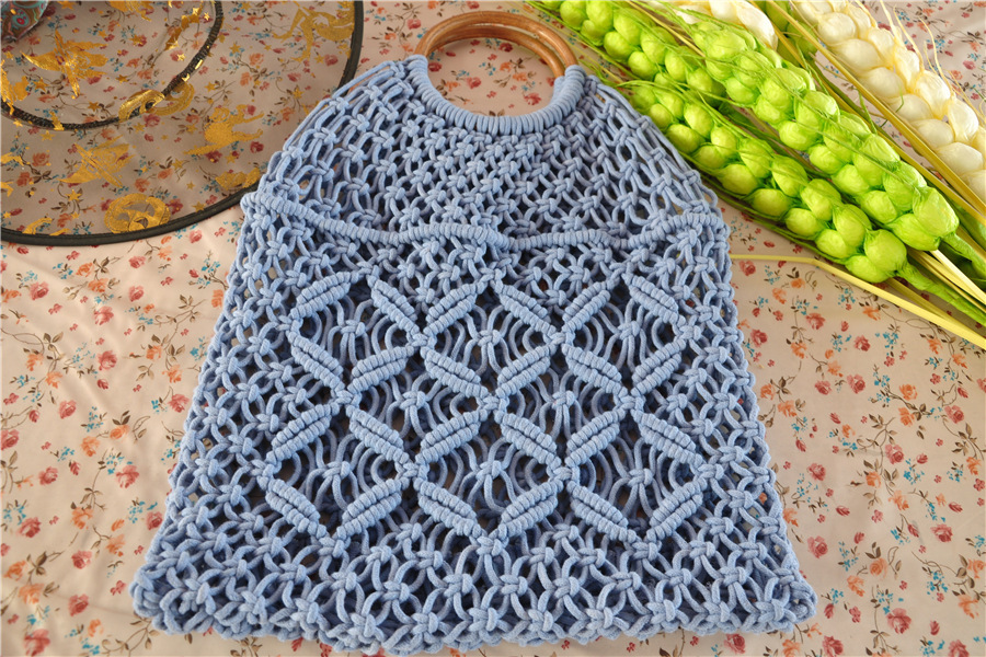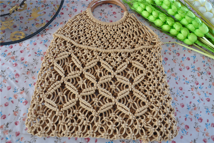 厂家现货新款编织包手提编织包潮女森系草编包手工棉绳网兜沙滩包