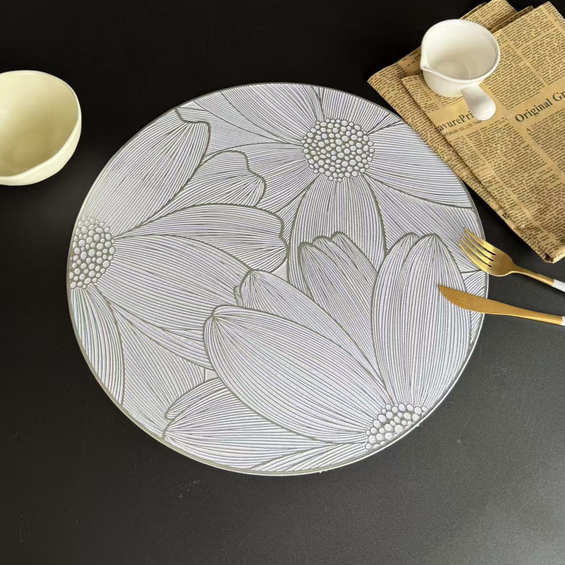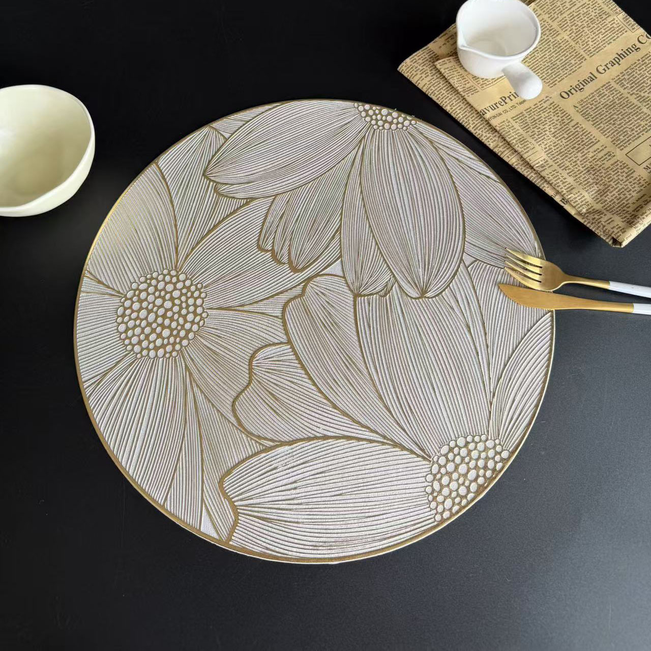 商品名称:防水米底太阳花餐垫