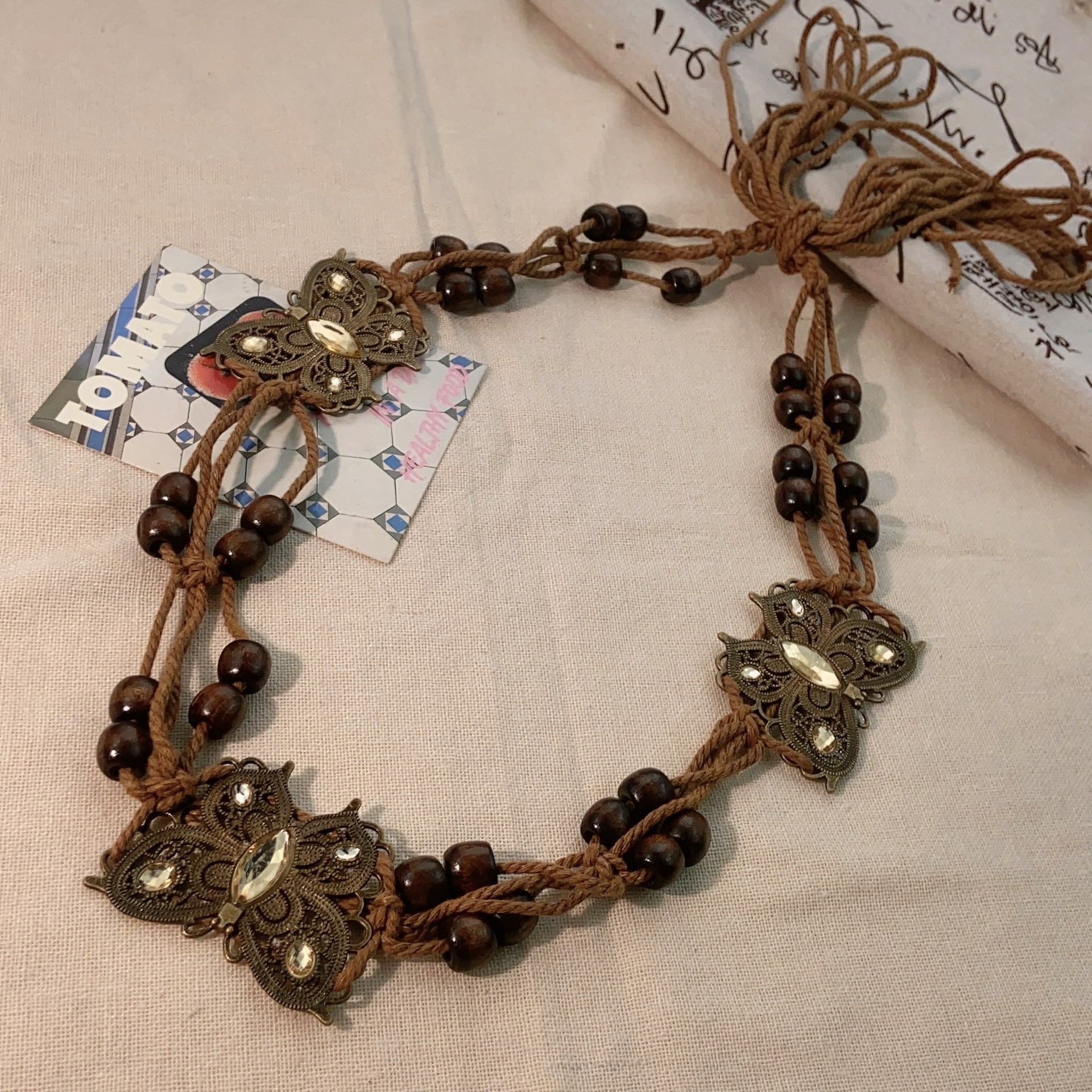 波西米亚风百搭编织腰带女民族风蝴蝶串珠腰链时尚高级感腰带腰饰 投诉