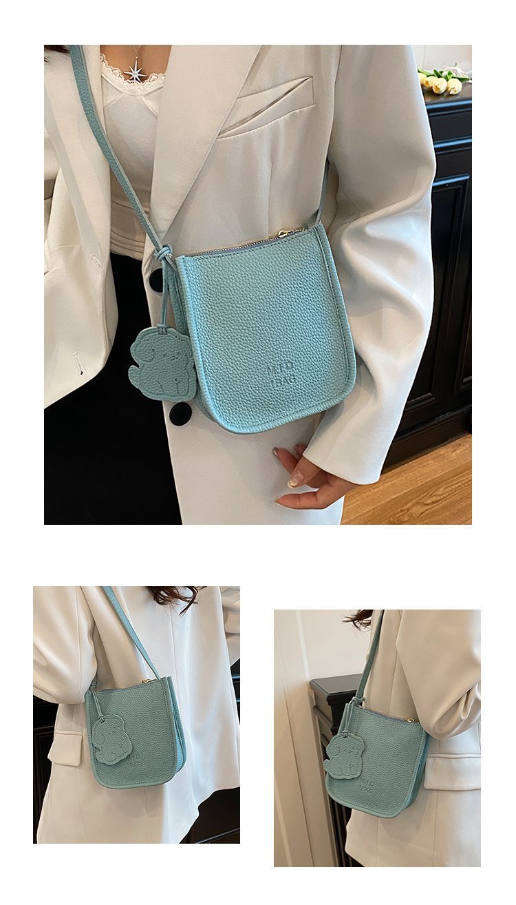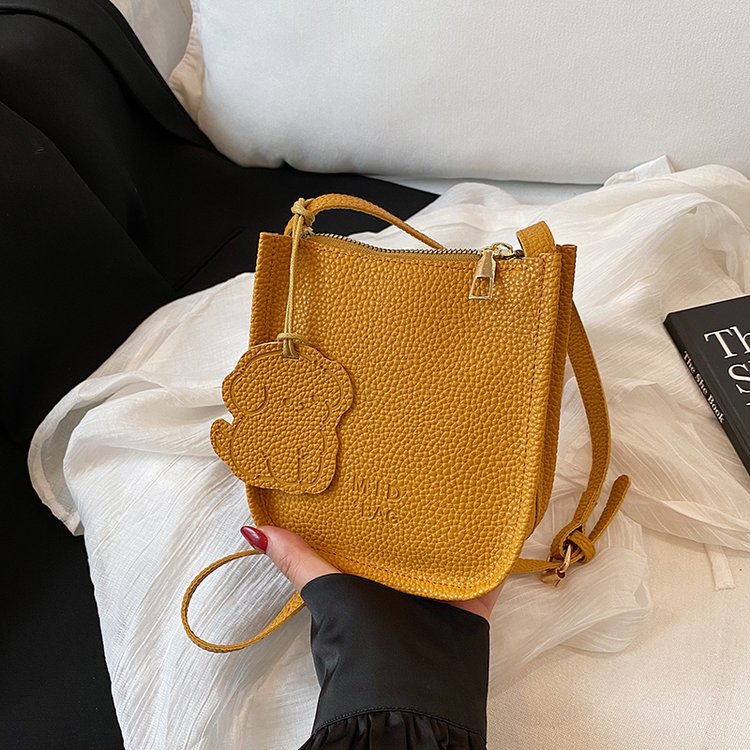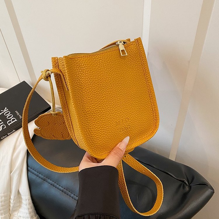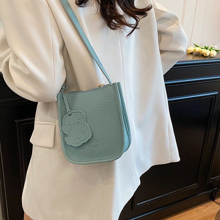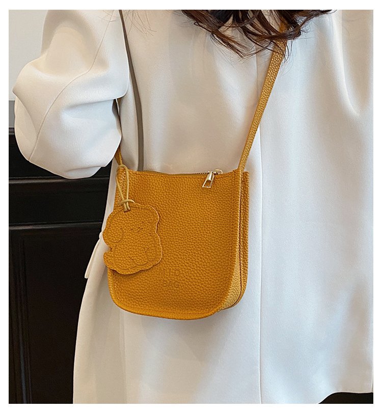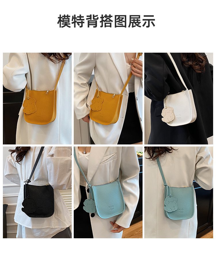 批发简约荔枝纹水桶包包女时尚通勤质感纯色单肩竖款斜挎包 English | 投诉