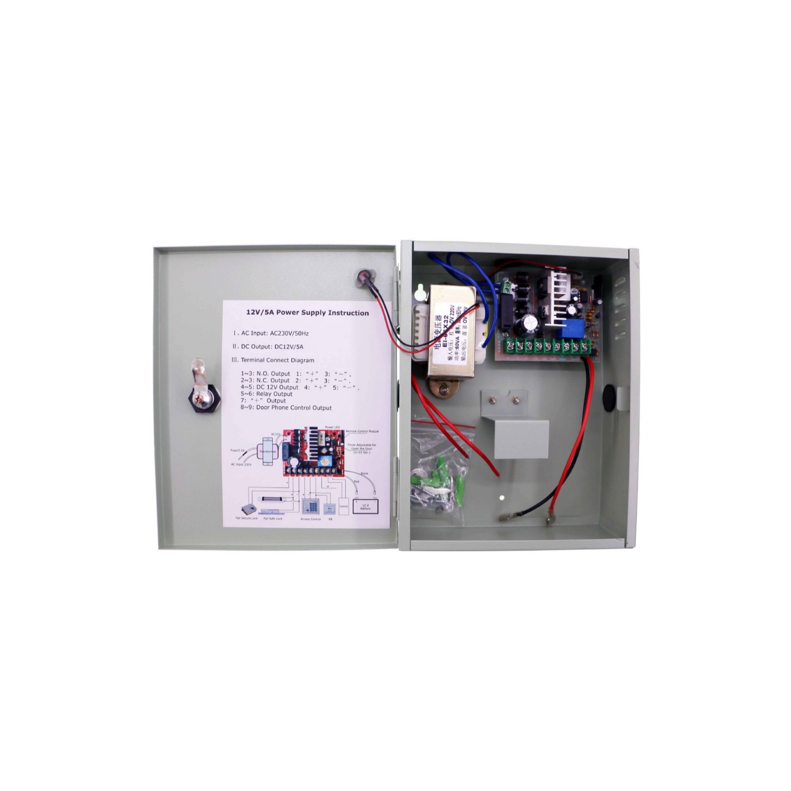 12V5A门禁专用电源12V5A4CH不间断电源12V7.2Ah门禁磁力锁电源箱