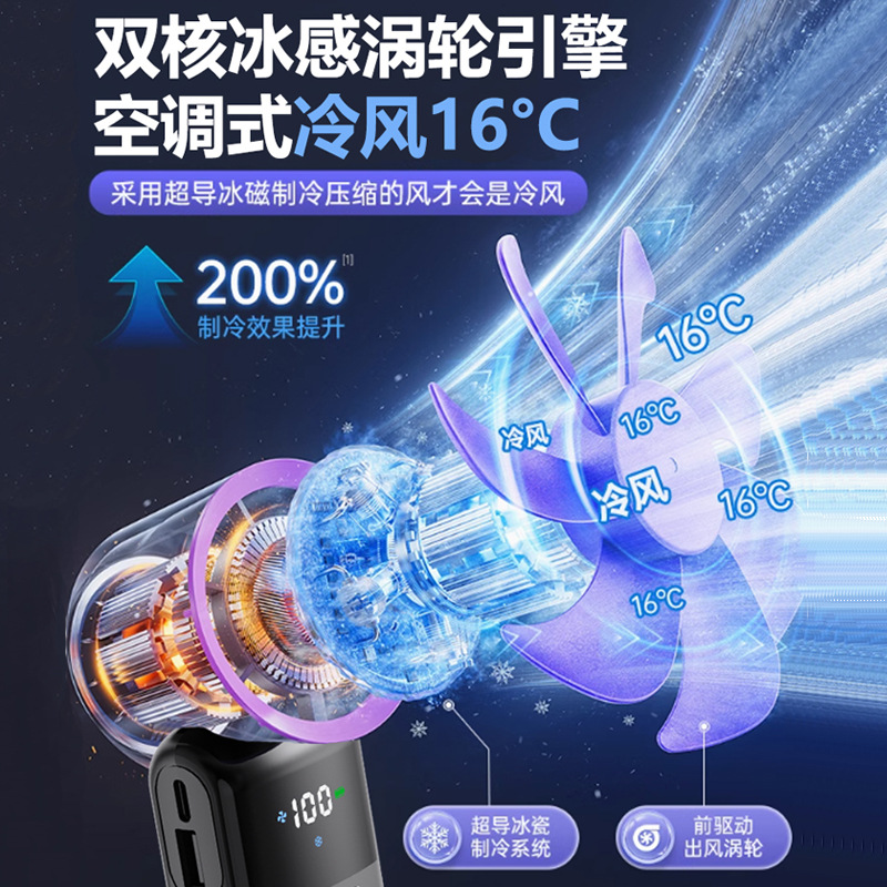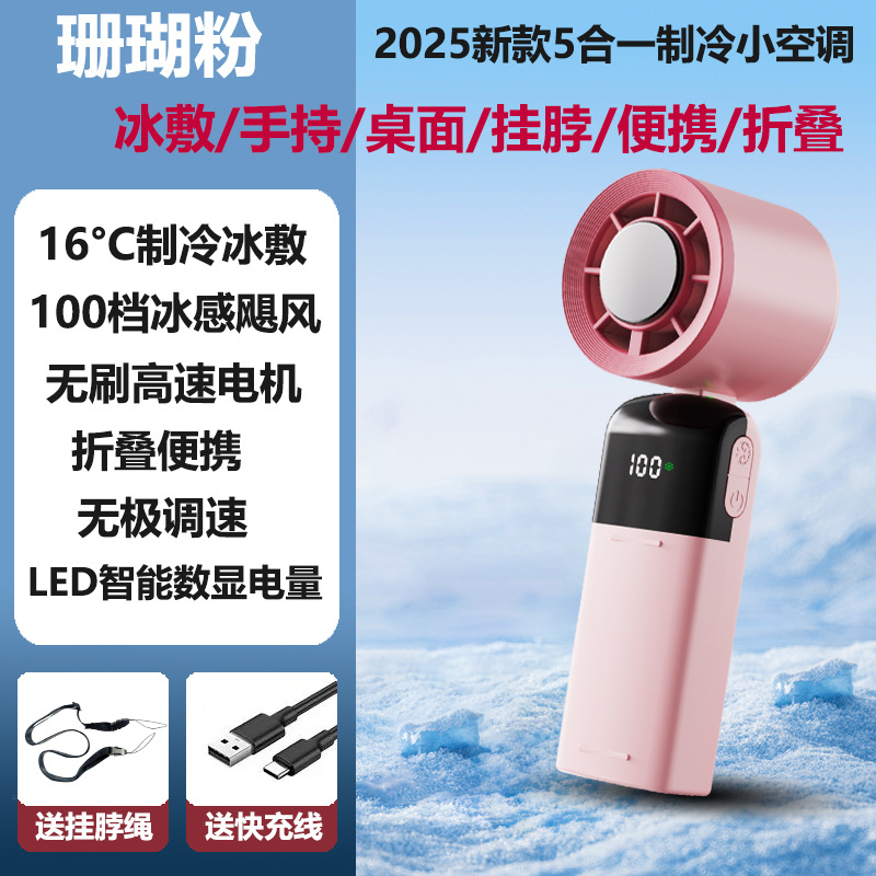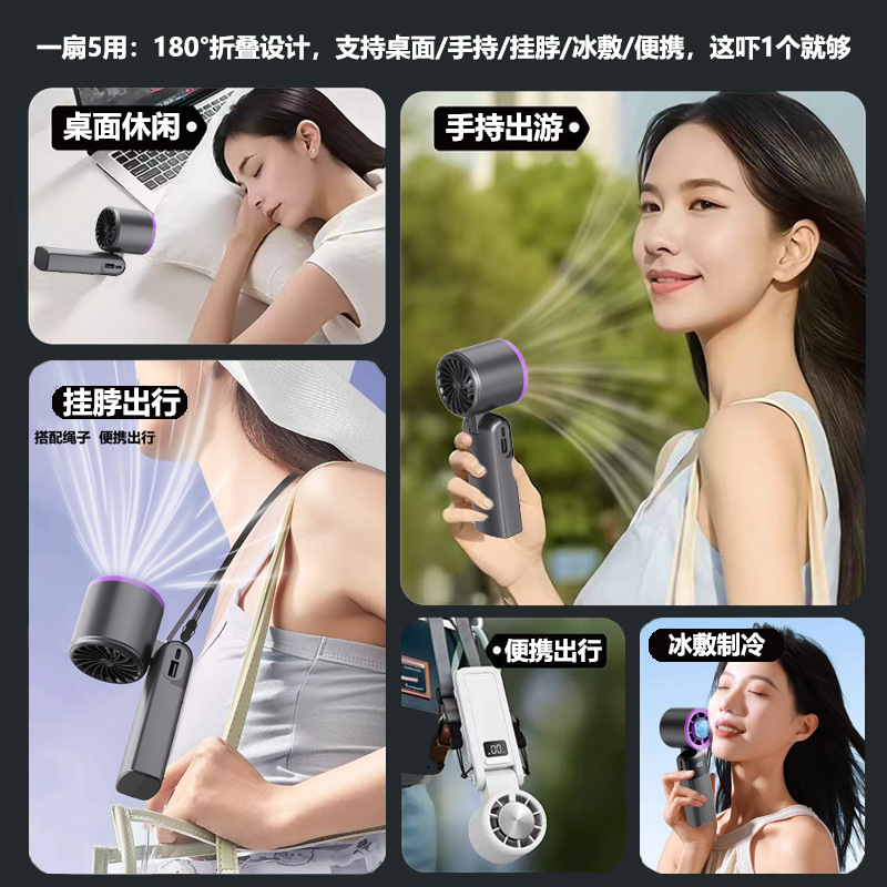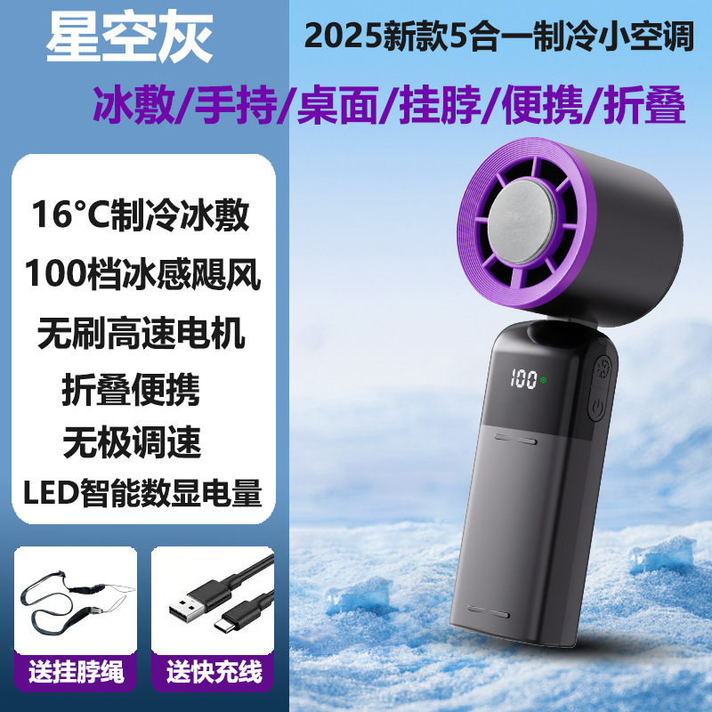 新款手持制冷风扇100档制冷折叠便携式涡轮迷你半导体冰敷小风扇 手持风扇 便携式风扇 大容量风扇 大风力风扇无极调速风扇 冰敷风扇折叠风扇