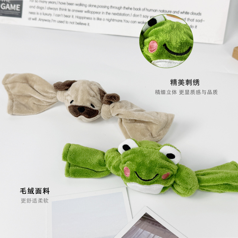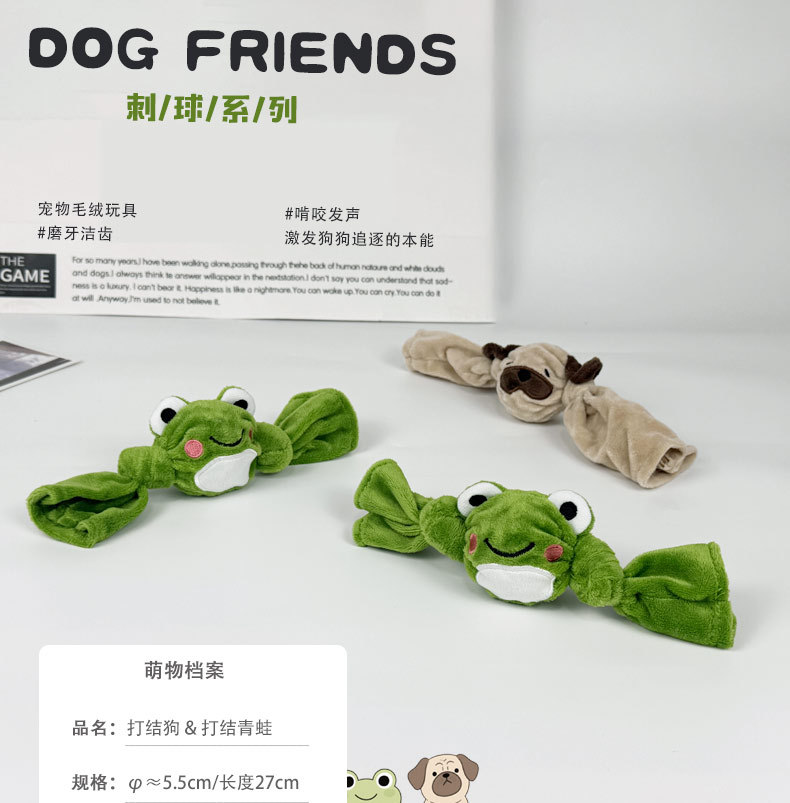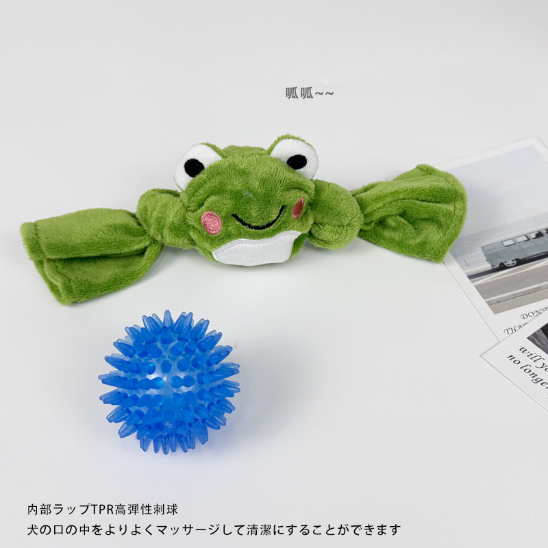 可爱毛绒绒狗狗玩具青蛙打结刺球磨牙洁齿发声玩具宠物犬弹力球