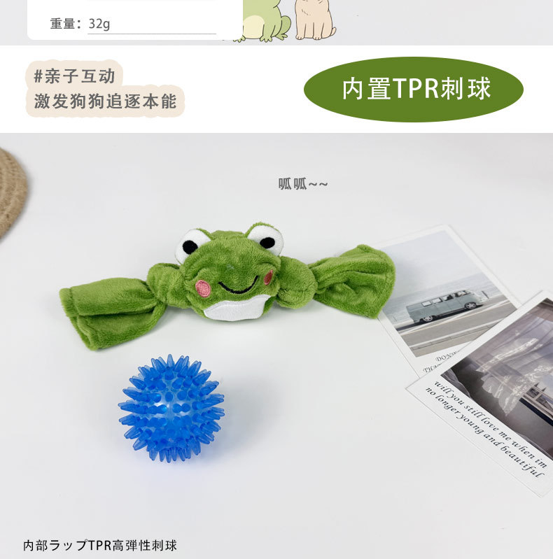 可爱毛绒绒狗狗玩具青蛙打结刺球磨牙洁齿发声玩具宠物犬弹力球 投诉