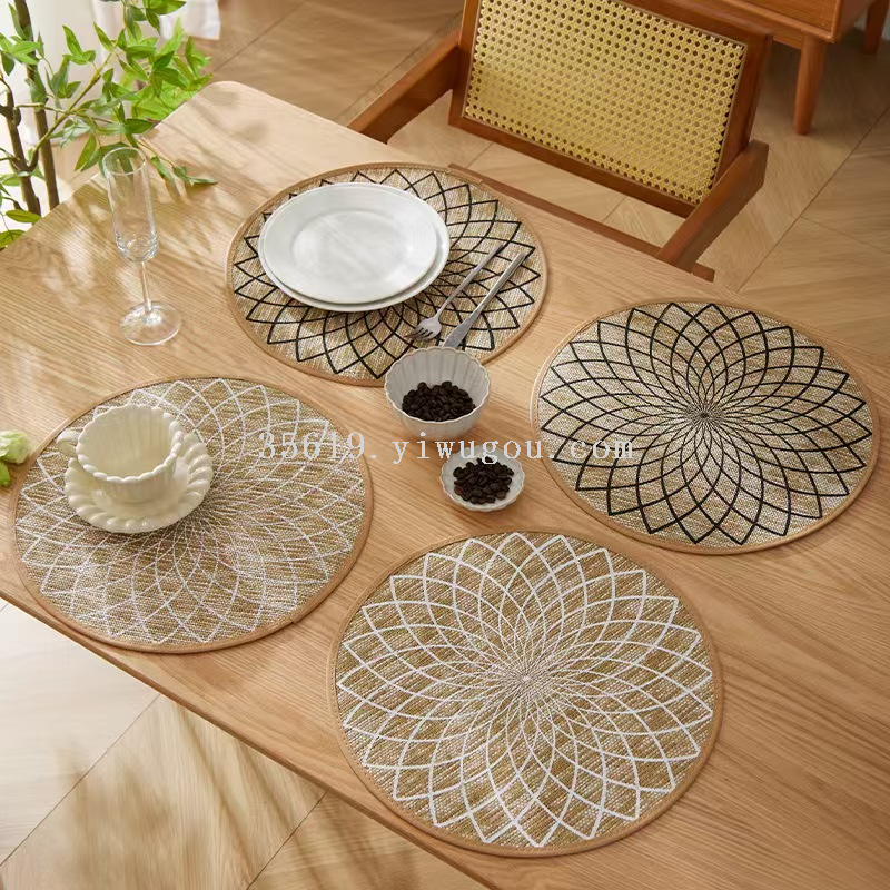 黄麻纸编织印刷菱形花款桌垫高级感十足皮革包边餐垫装饰垫 English | 投诉