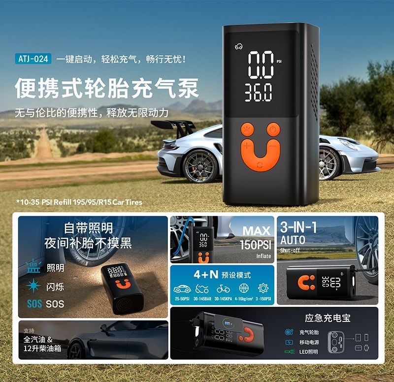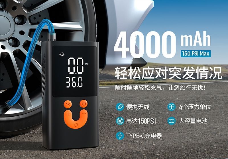 车载充气泵便携式汽车用打气泵大功率电动轮胎加气泵多功能打气筒