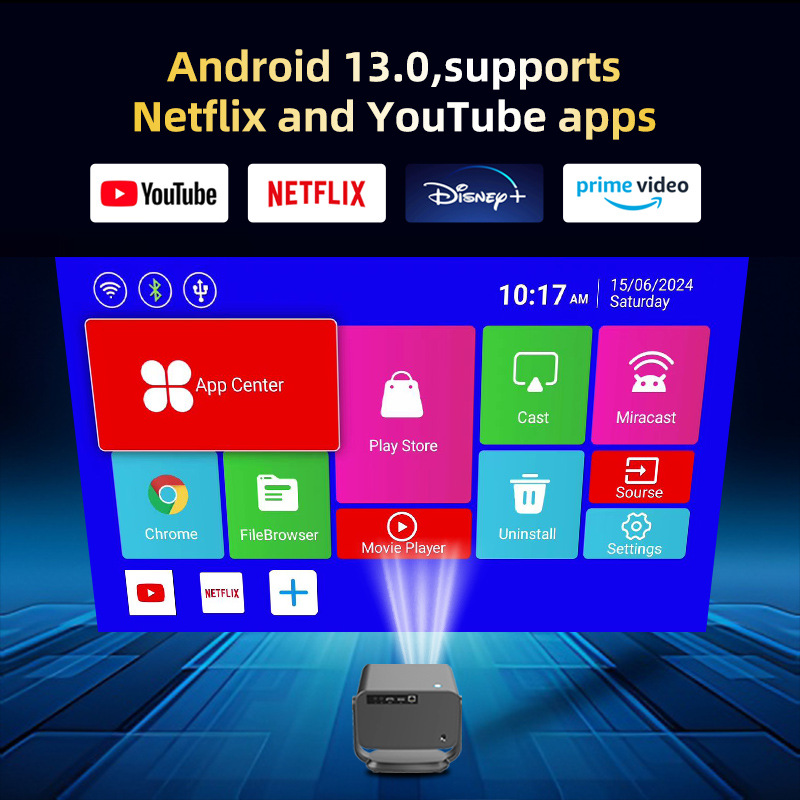 货号: p20 pro 色彩: 美规英文系统AU,欧规英文系统EU,中规 功率: 95 分辨率: 1080P(1920x1080) 亮度: 500 投影画画尺寸: 100寸 规格: 安卓13版顶级配置 3C证书编号: 2024300903000024 主要下游平台: 亚马逊