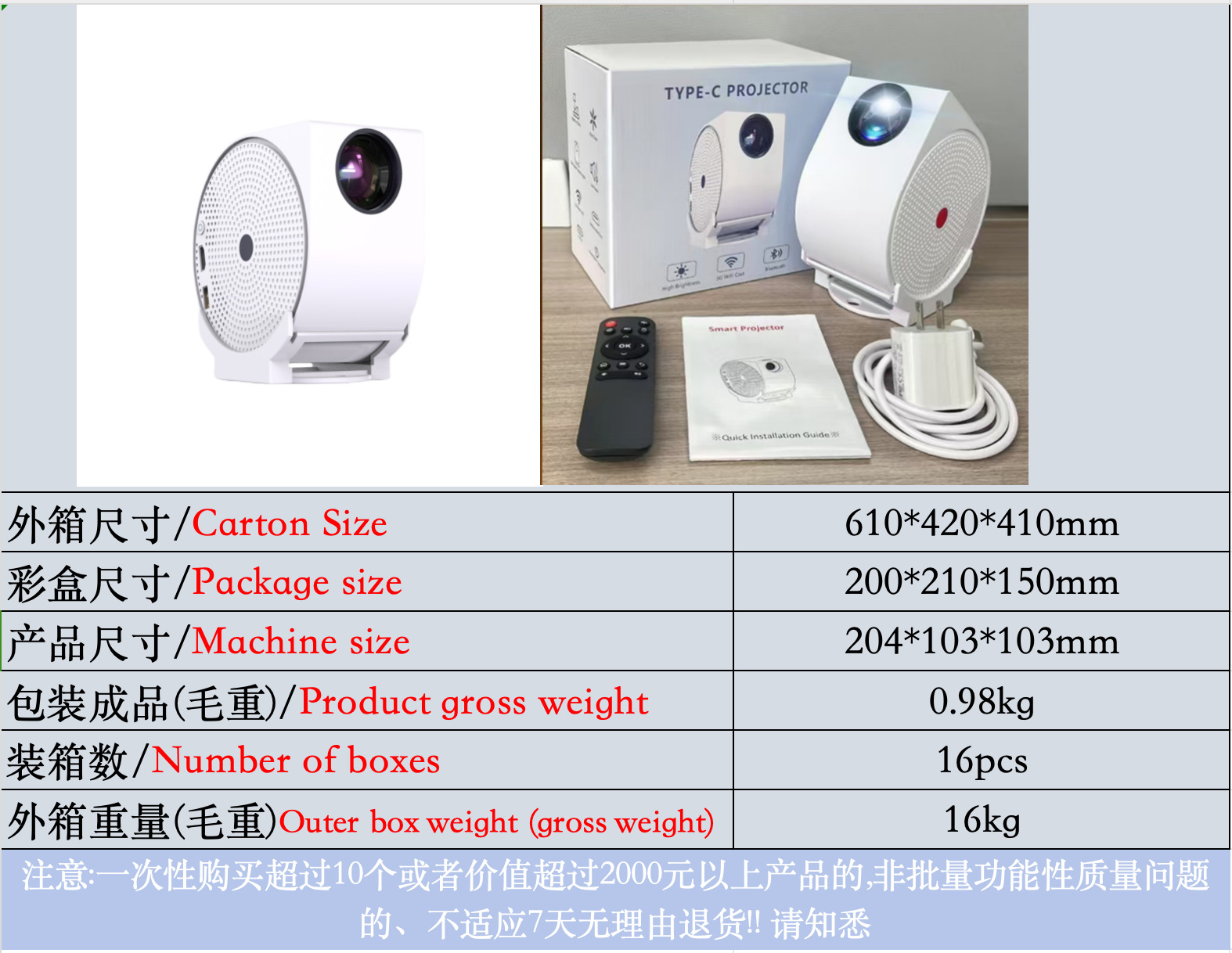 跨境新款迷你创意投影仪4K家用高清便携式影院智能360度云台投影 投诉