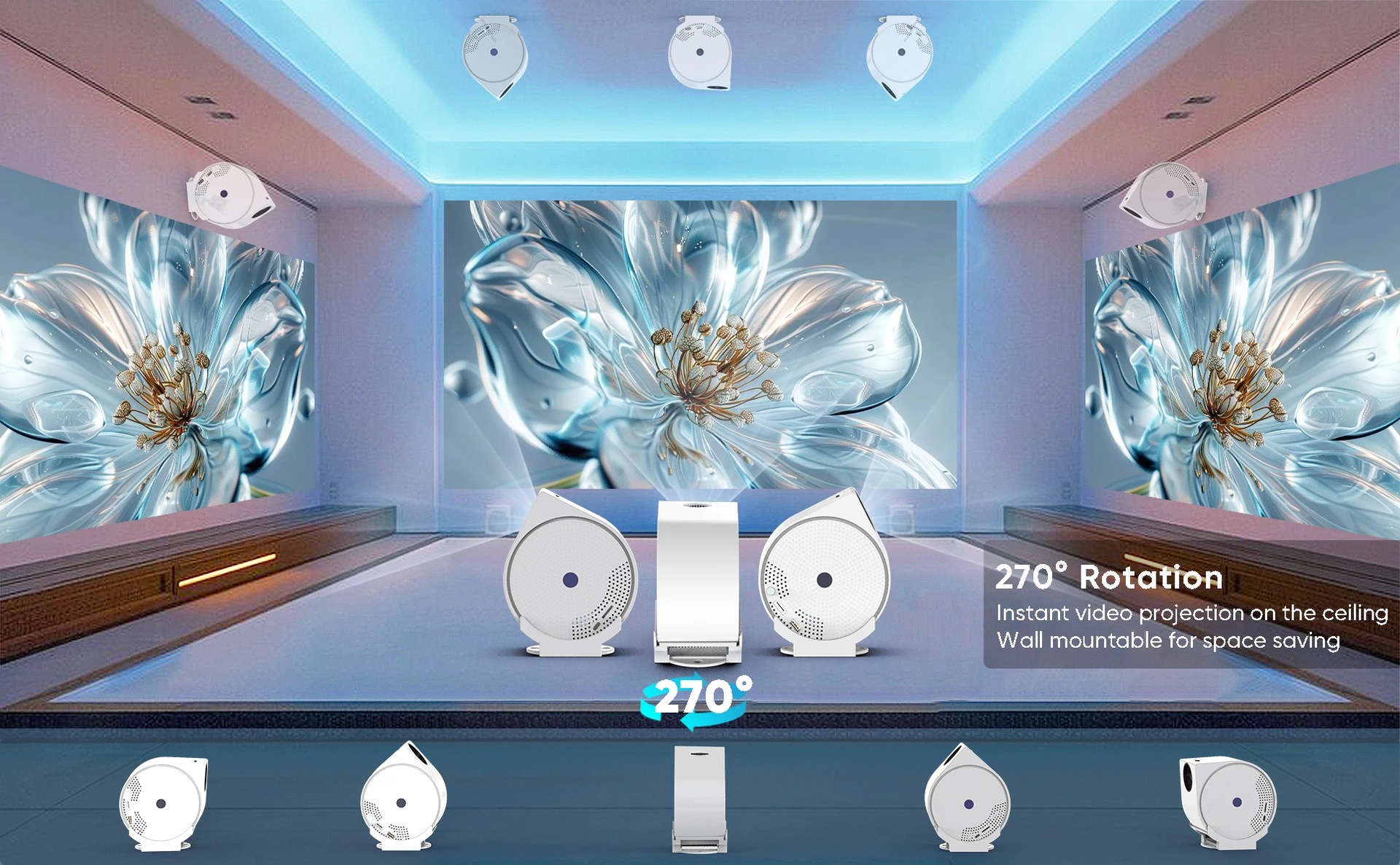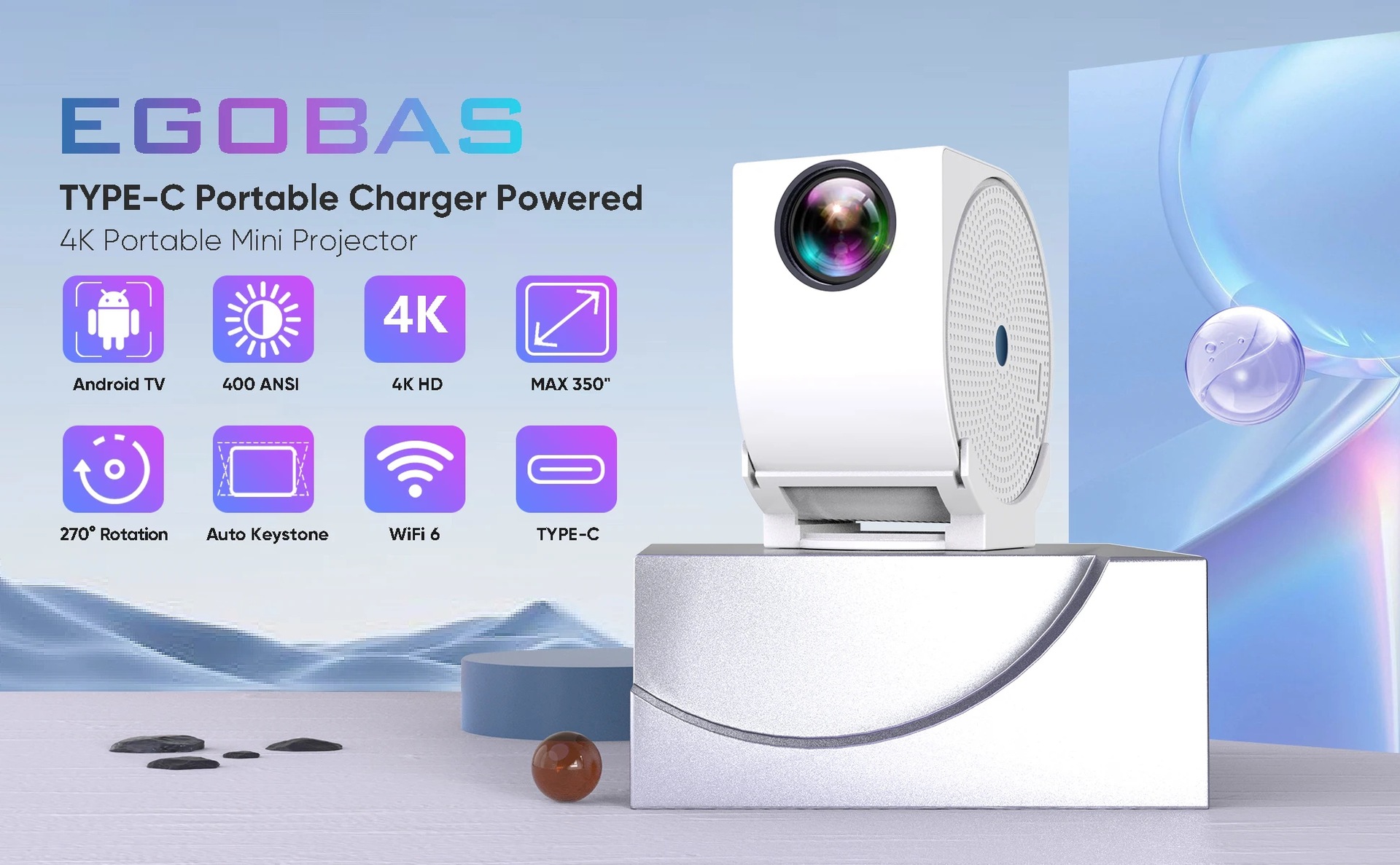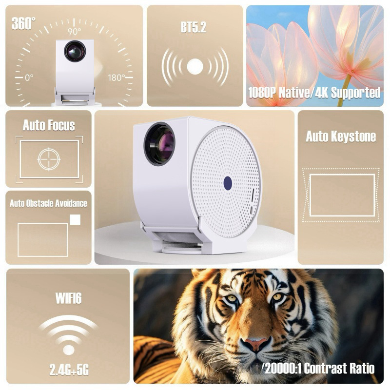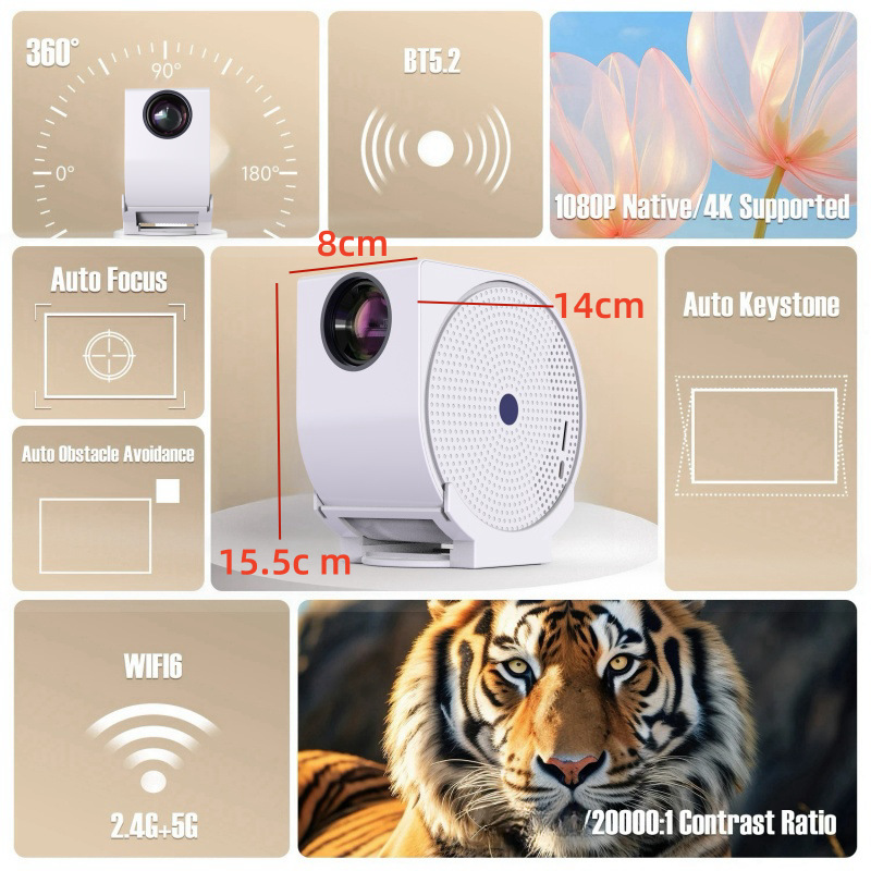 跨境新款迷你创意投影仪4K家用高清便携式影院智能360度云台投影