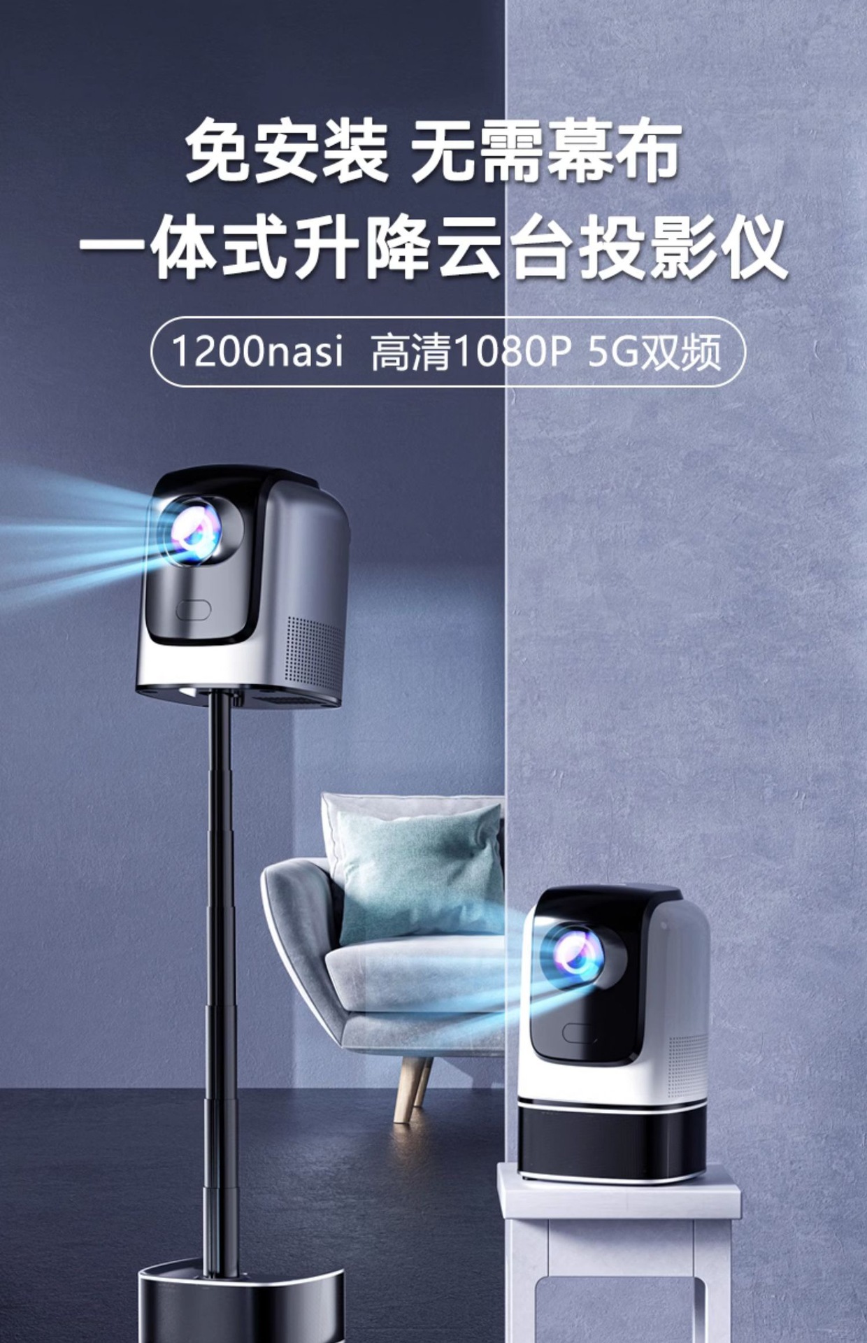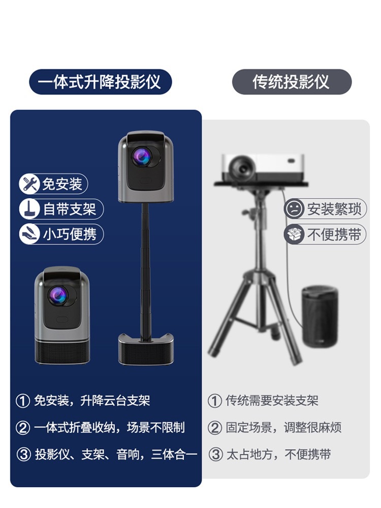 新款一体式智能投影仪超高清家用卧室家庭影院投墙投屏智能投影机