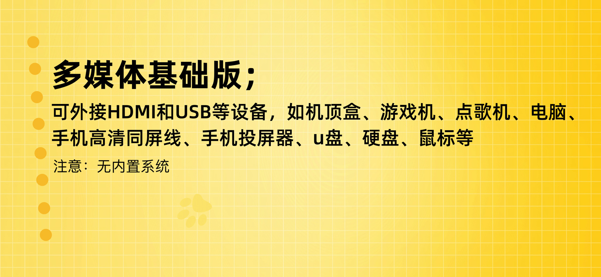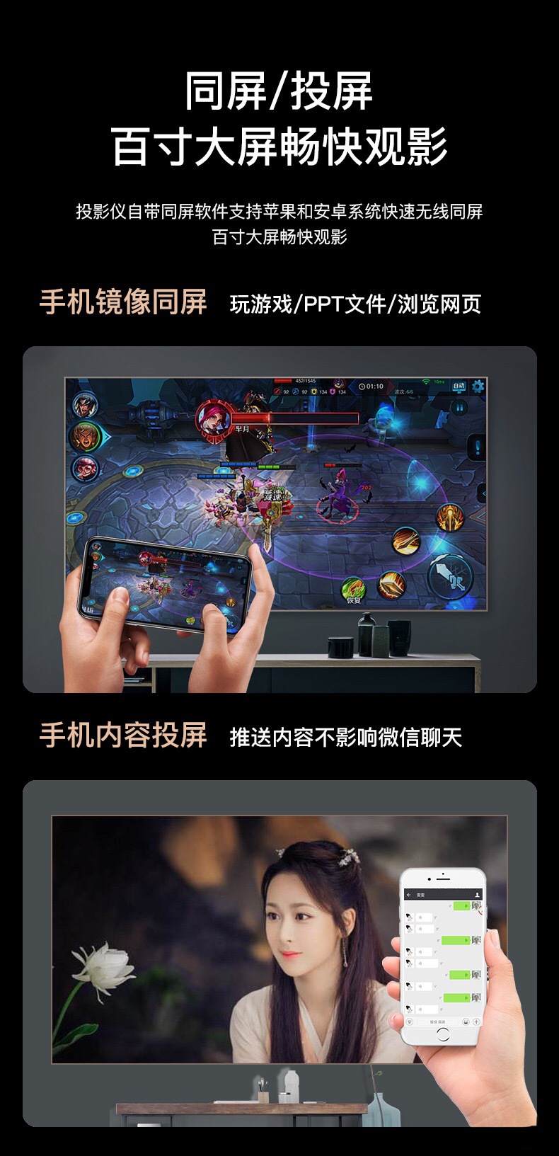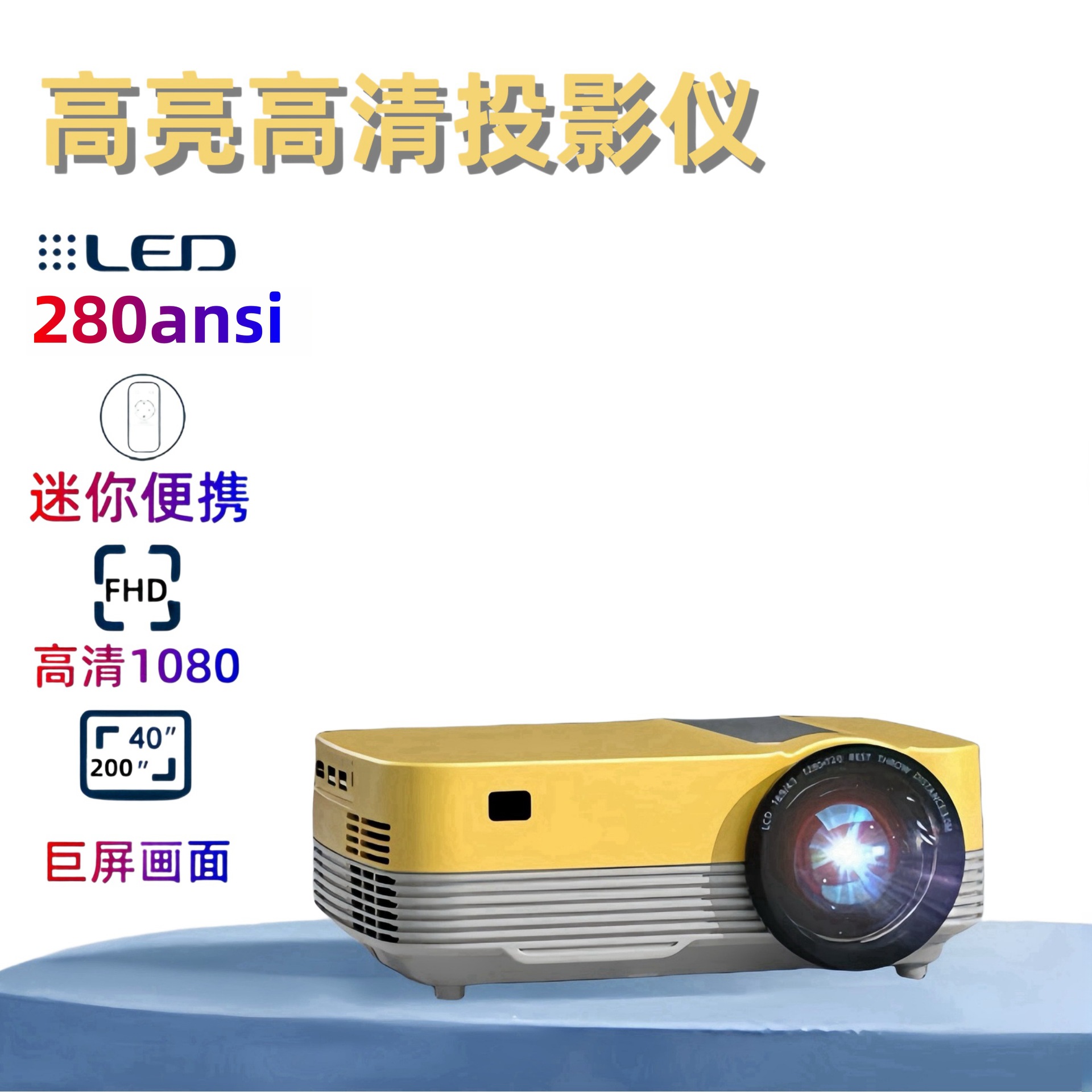 色彩: 欧规,美规,英规,澳规 功率: 55 分辨率: 720P(1280×720) 亮度: 280 投影画画尺寸: 100寸 规格: 多媒体基础版【便携式】,同屏版【便携式】 3C证书编号: 2021230903001046 主要下游平台: 速卖通 有可授权的自有品牌: 否