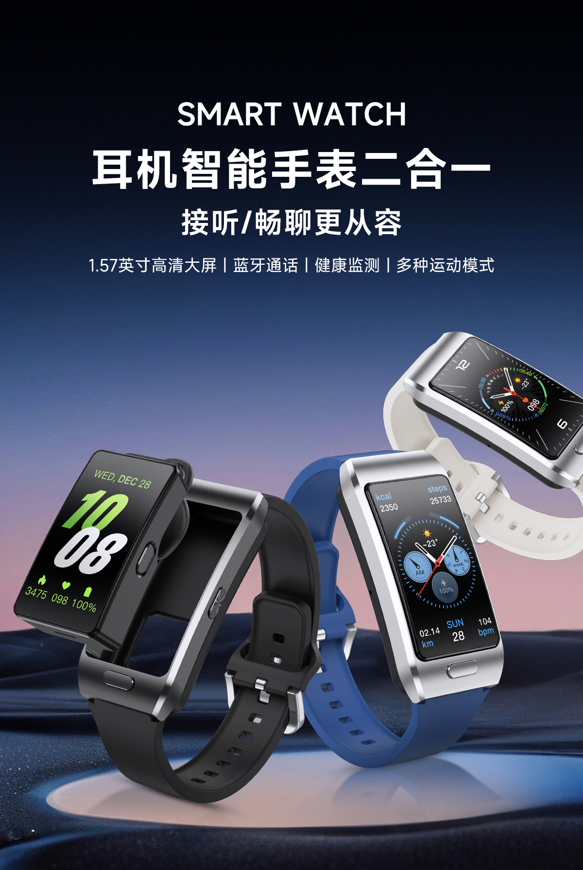 新品Z15MAX耳机智能手表二合一可拆卸通话手环心率健康检测