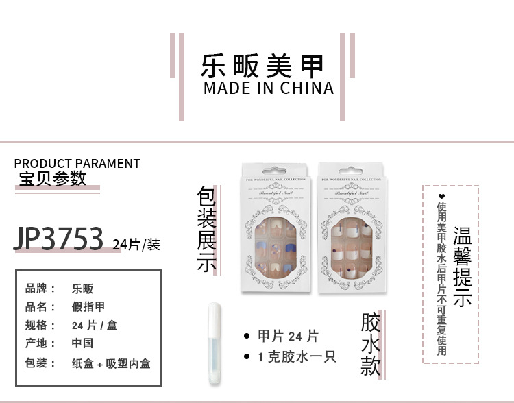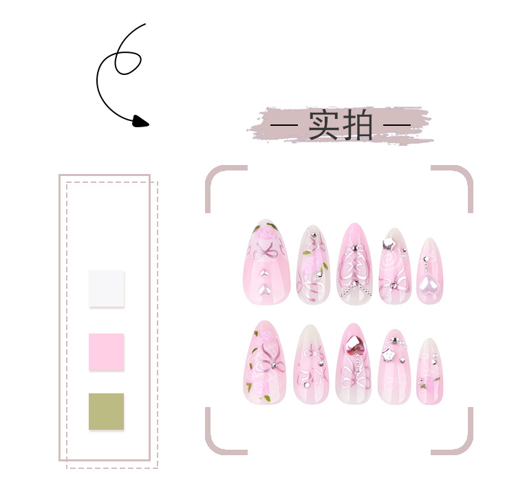 甜美粉色穿戴甲星星闪钻美甲假指甲短款杏仁穿戴式甲片成品批发 投诉