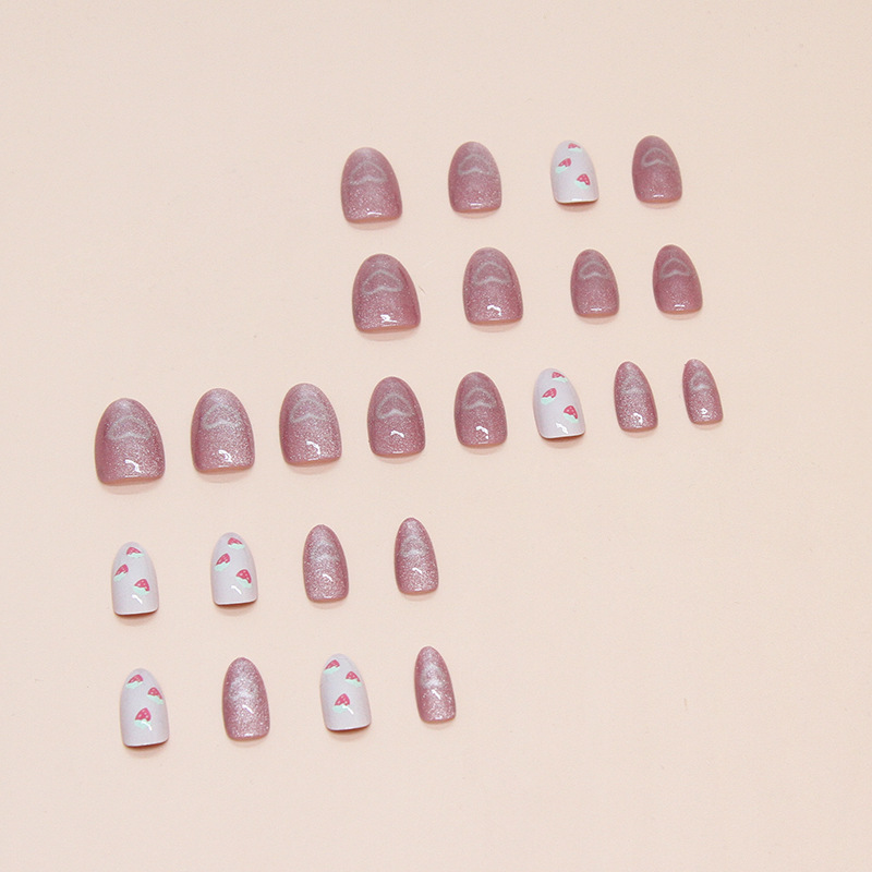追光猫眼穿戴甲美甲片指甲片杏仁型假指甲可爱草莓爱心甲片24片