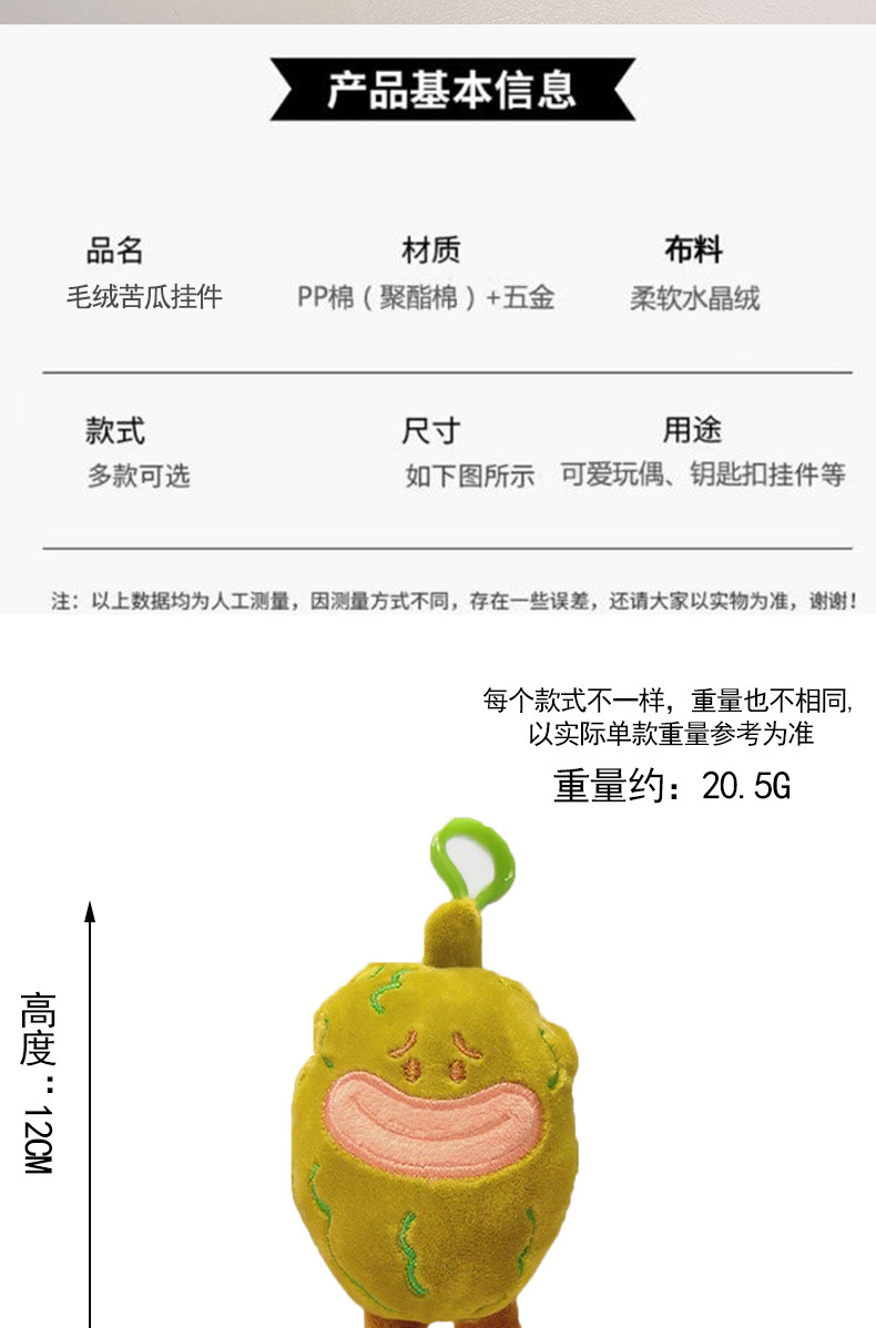 表情苦瓜毛绒挂件网红娃娃公仔批发蔬菜玩偶小礼物钥匙扣毛绒玩具 投诉