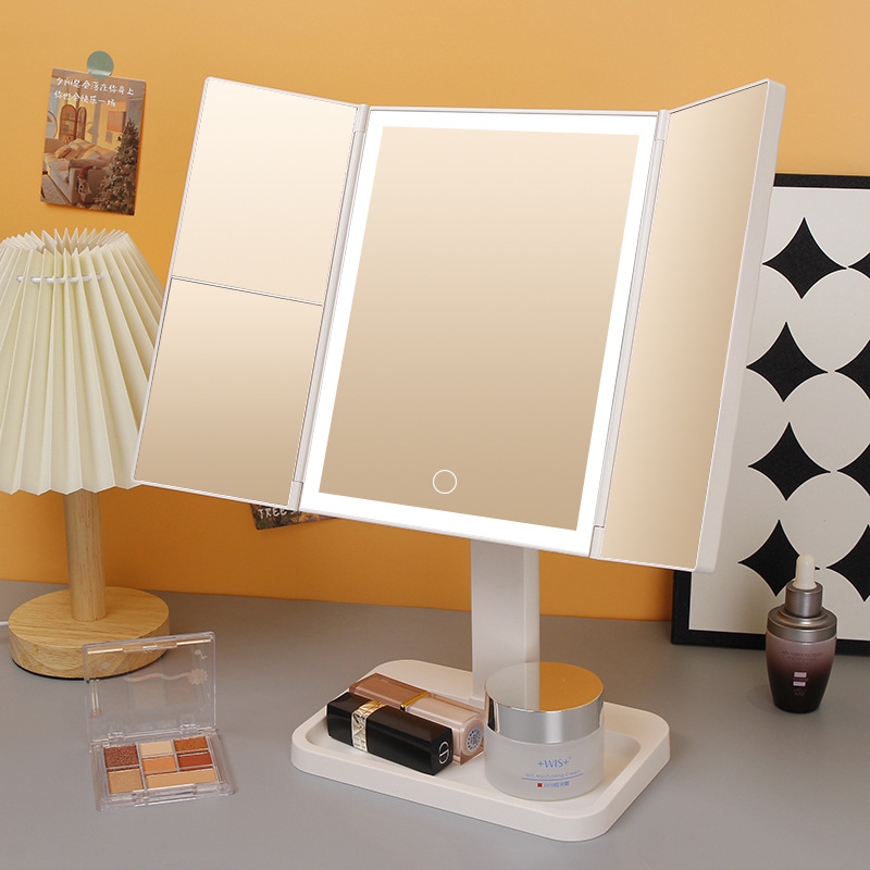 卧室桌面台式led化妆镜带灯宿舍高颜值三折叠只能补光梳妆镜批发 English | 投诉