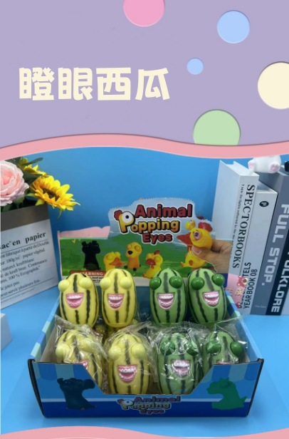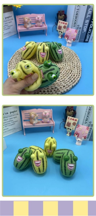 爆眼西瓜条捏捏乐儿童玩具瞪眼西瓜笑脸解压眯眼长条西瓜跨境批发 投诉