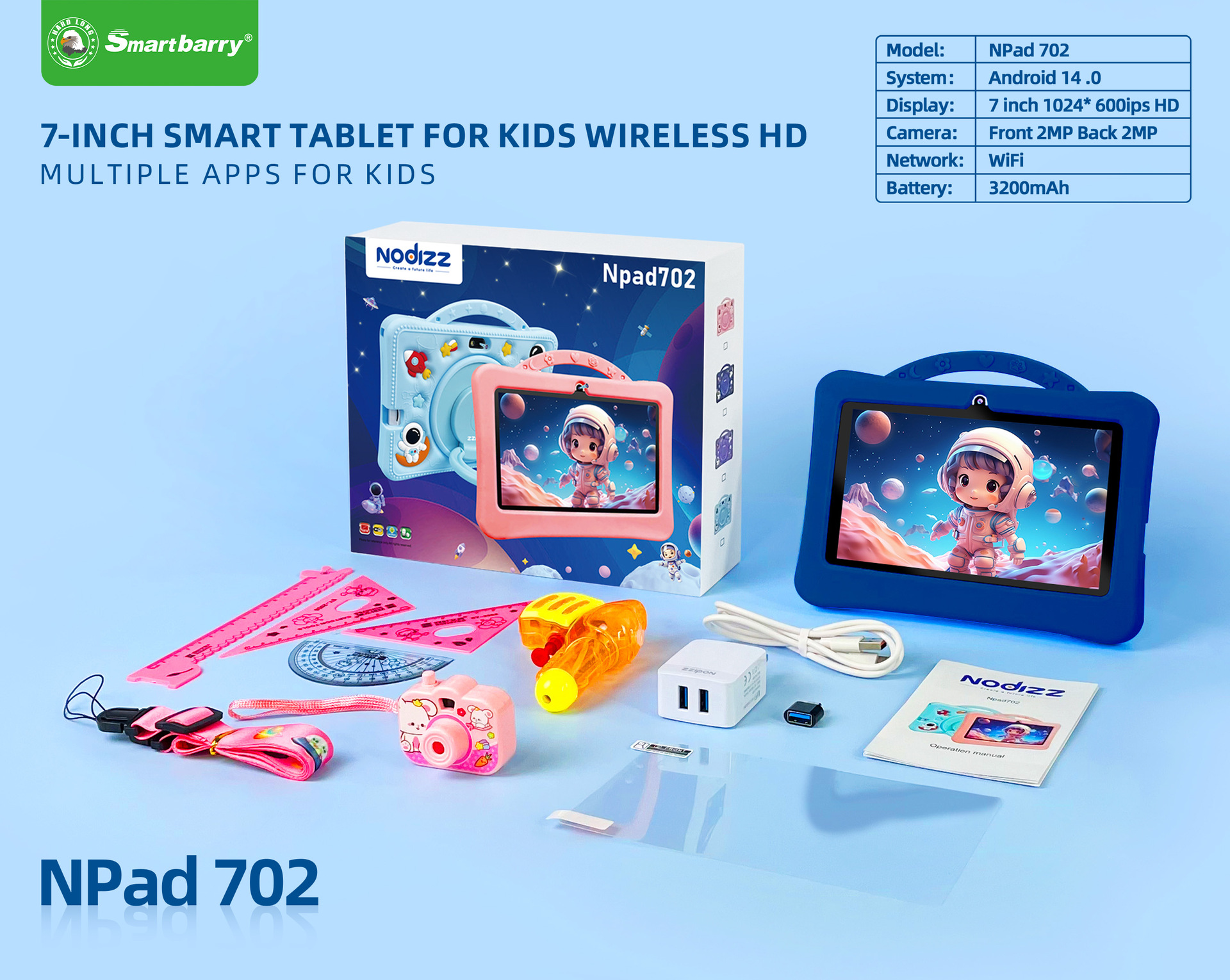 品牌: smartberry 型号: Npad702 货号: Npad702 上市时间: 2024 货源类别: 现货 操作系统: ANDROID 存储类型: 固态硬盘 硬盘容量: 1GB 屏幕尺寸: 7英寸 蓝牙: 支持