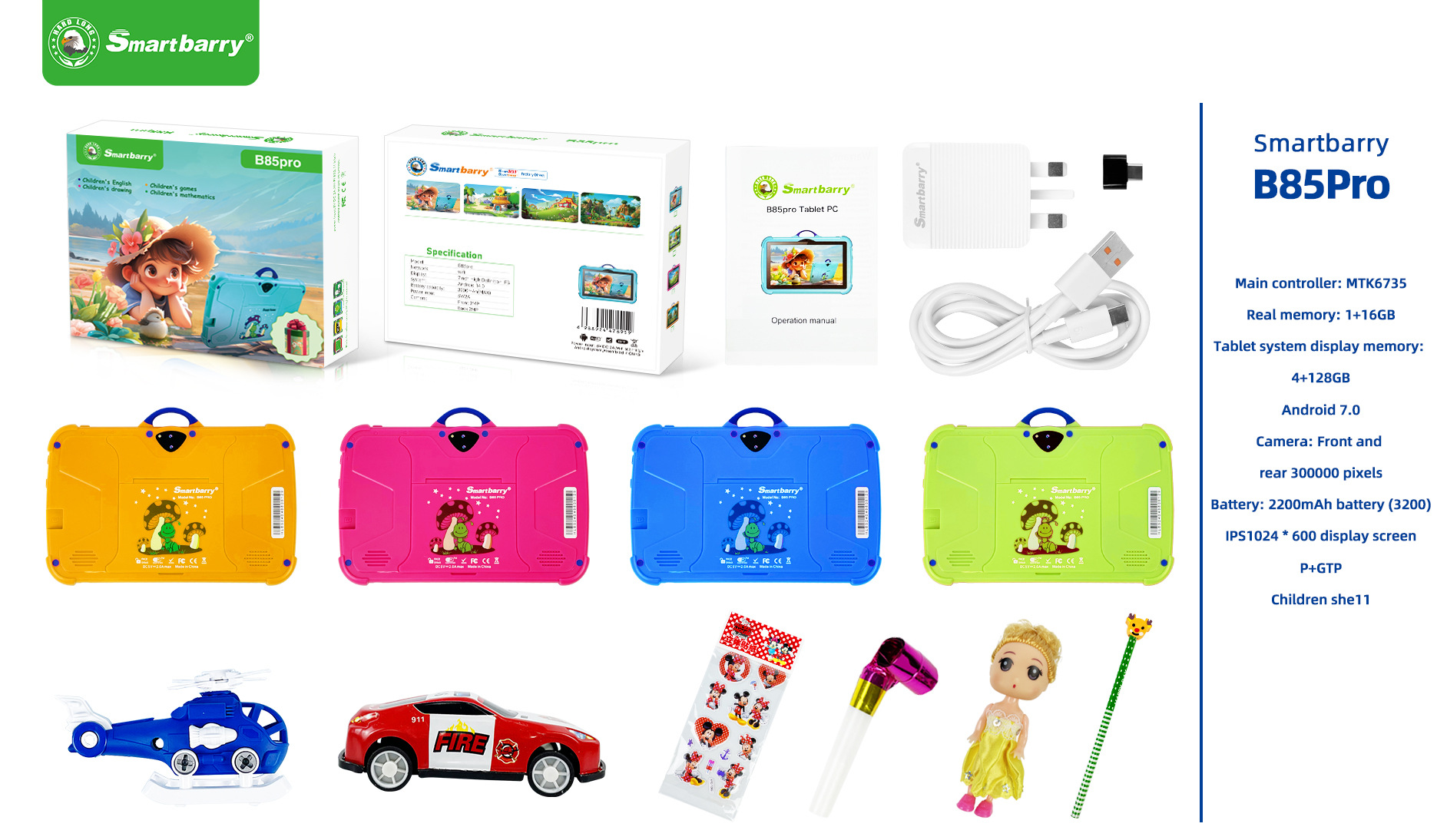 现货B89PLUS儿童平板电脑7英尺游戏防摔保护套卡通便携自带爱娃娃 English | 投诉