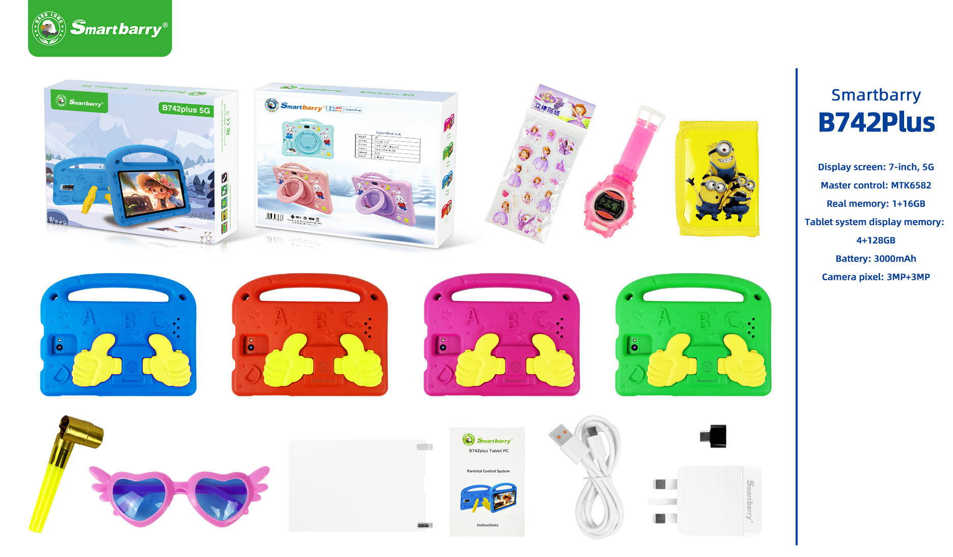 现货B89PLUS儿童平板电脑7英尺游戏防摔保护套卡通便携自带爱娃娃