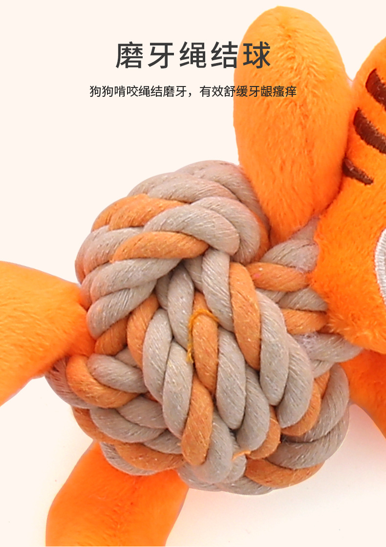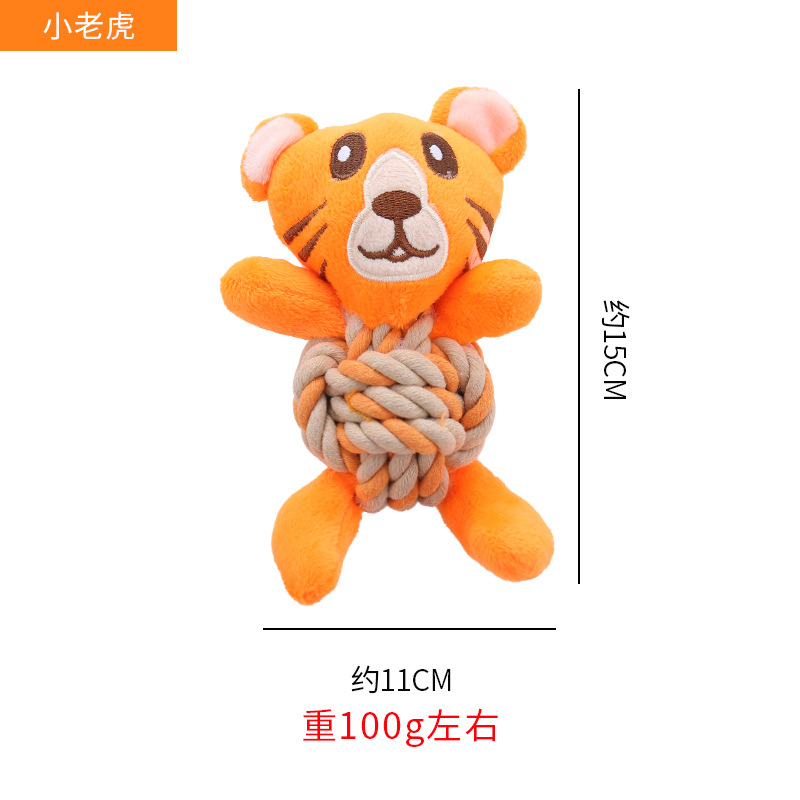 产品类别: 绳结玩具 是否进口: 否 材质: 毛绒 重量: 100g 货号: PT336 产地: 浙江 箱装数量: 100 品牌: 其他 是否专利货源: 否 颜色: 橘黄色老虎,粉色大象,棕色麋鹿,黄色姜饼