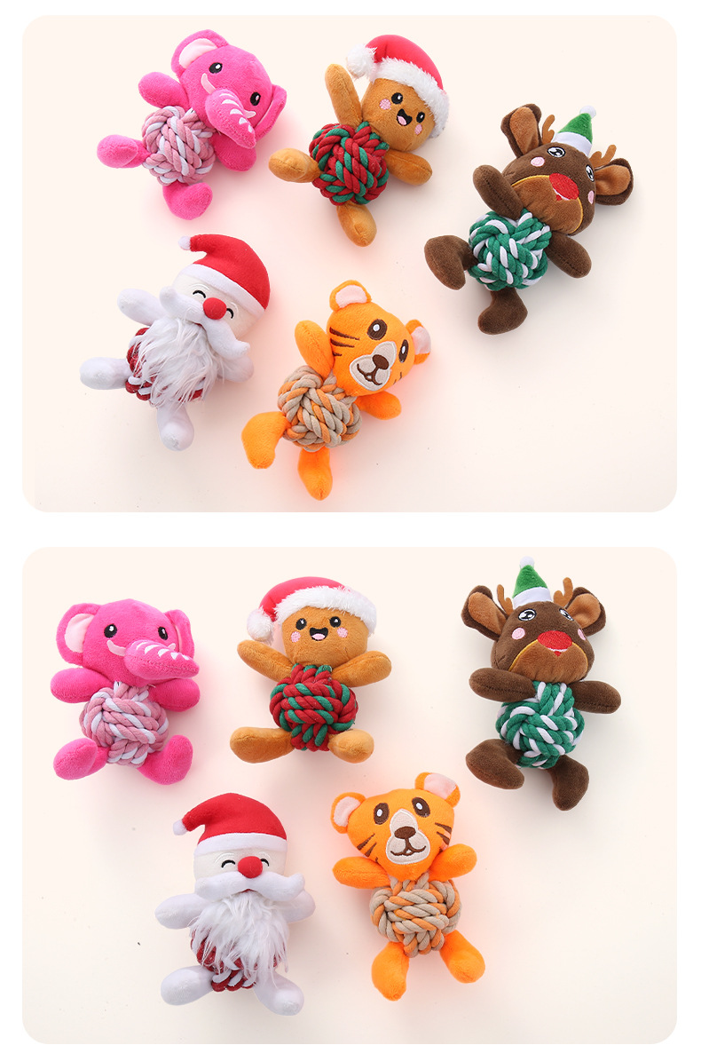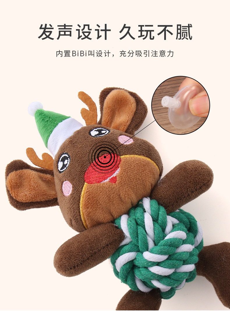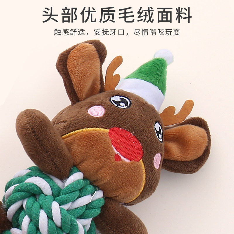 亚马逊爆款宠物玩具圣诞系列毛绒棉绳发声玩具耐咬磨牙绳结狗玩具 投诉