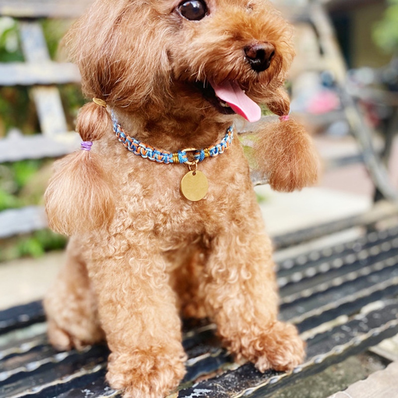 纯手工编织小型犬幼犬项圈 猫咪可调节颈链脖圈防丢失猫圈 可客制
