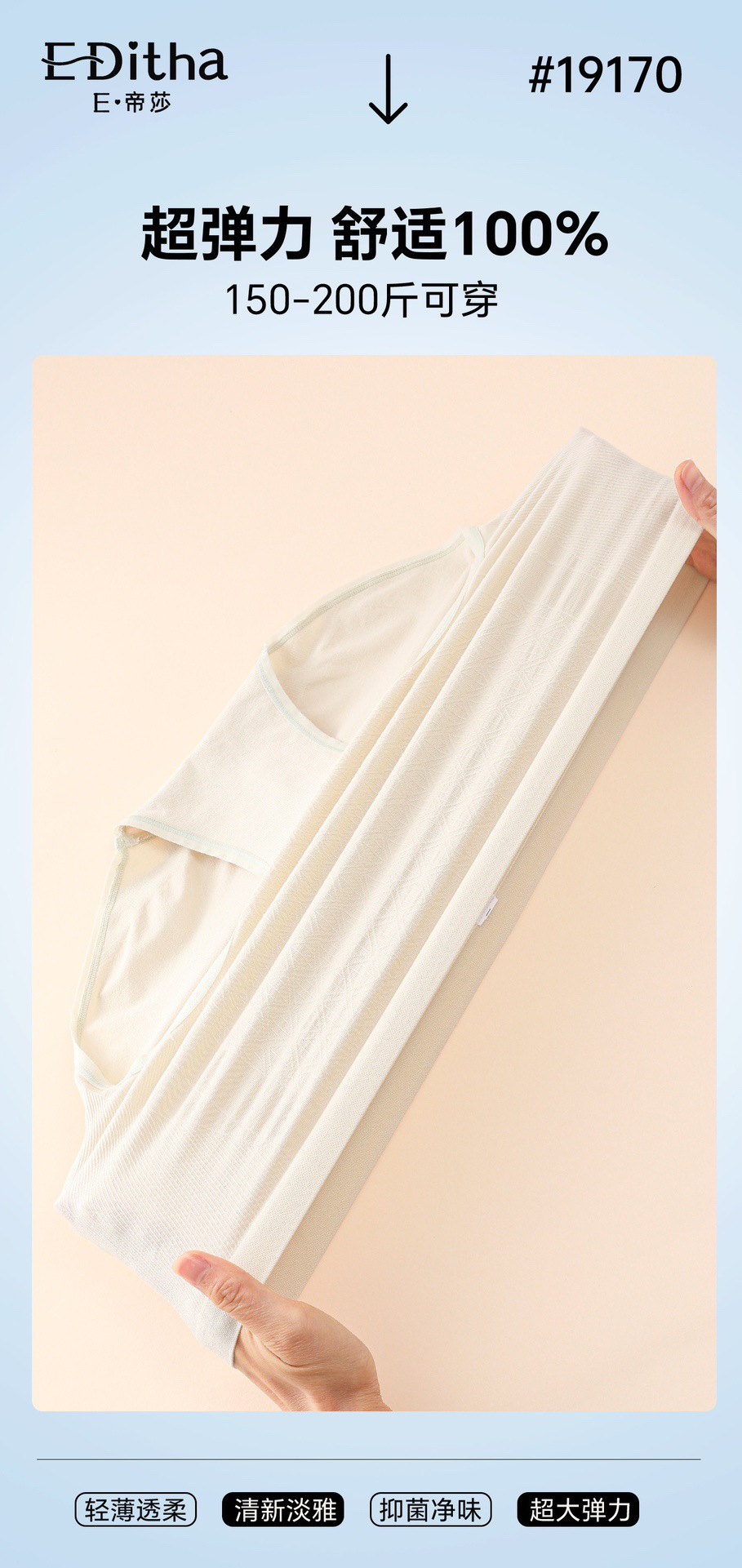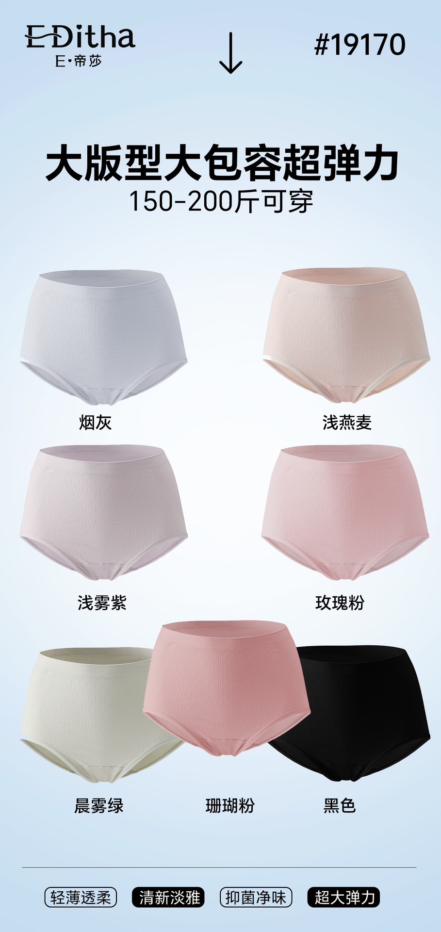 4、由于无缝工艺一体成型的特点,所以具有超高弹力,超大包容。不挑身材显身材。体重跨度30公斤范围内可选择同一内衣,告别选号烦恼。