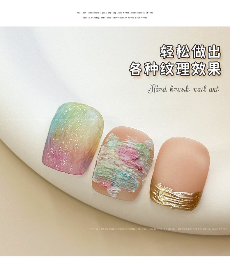 新美甲专业硬毛笔刷透粉色笔杆布契拉提造型硬毛光疗笔刷指甲工具