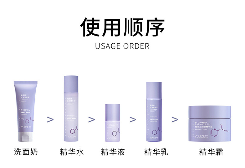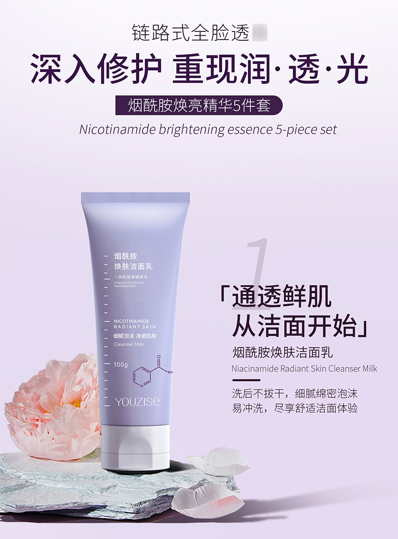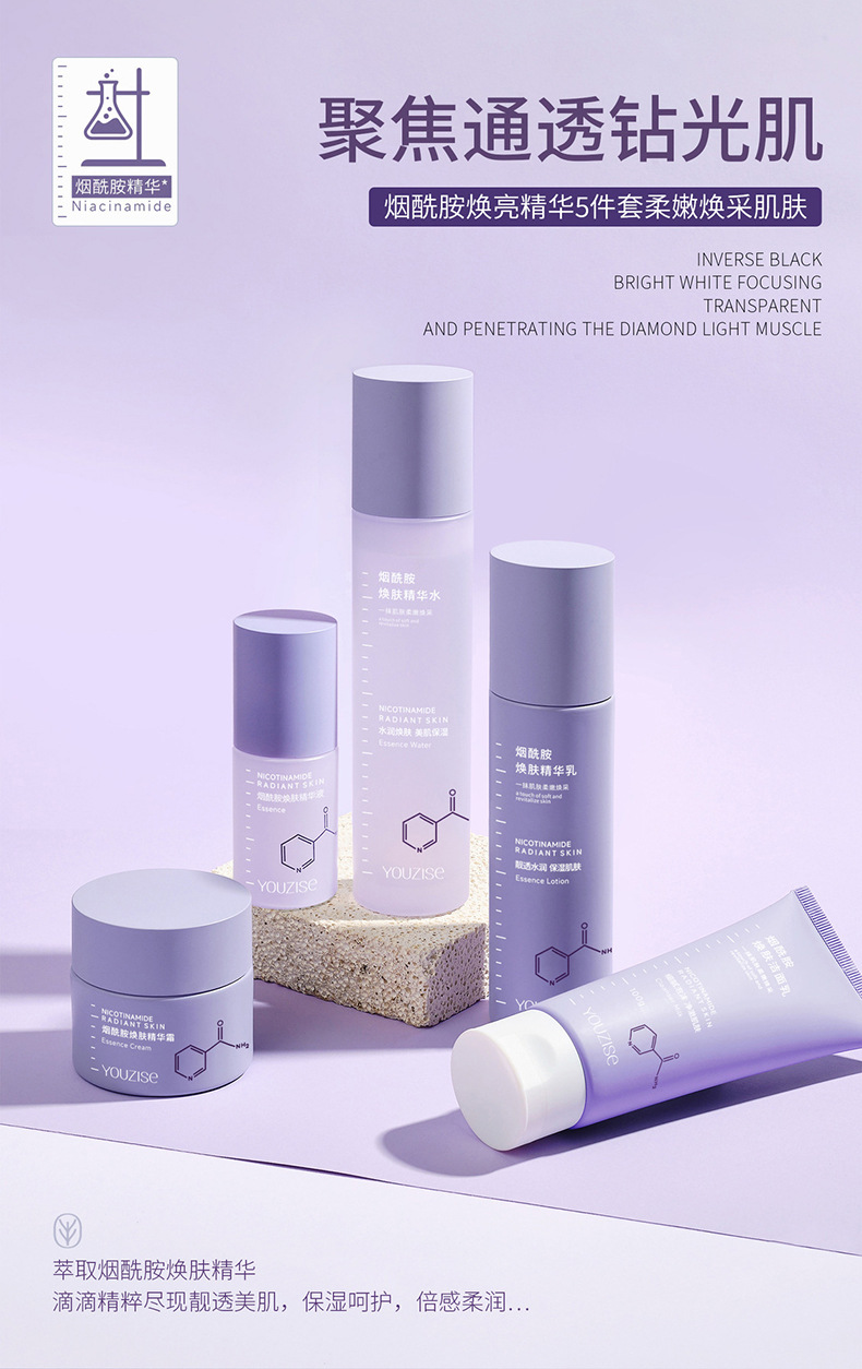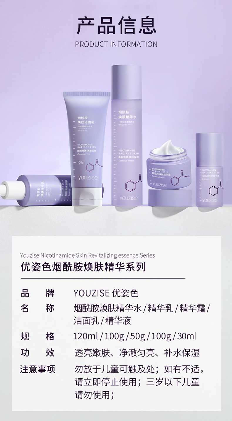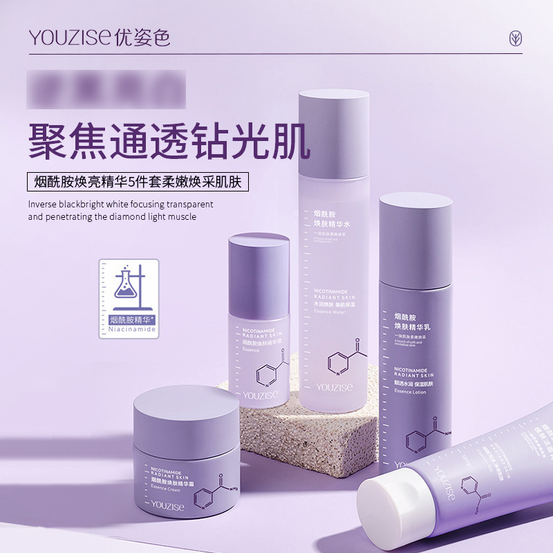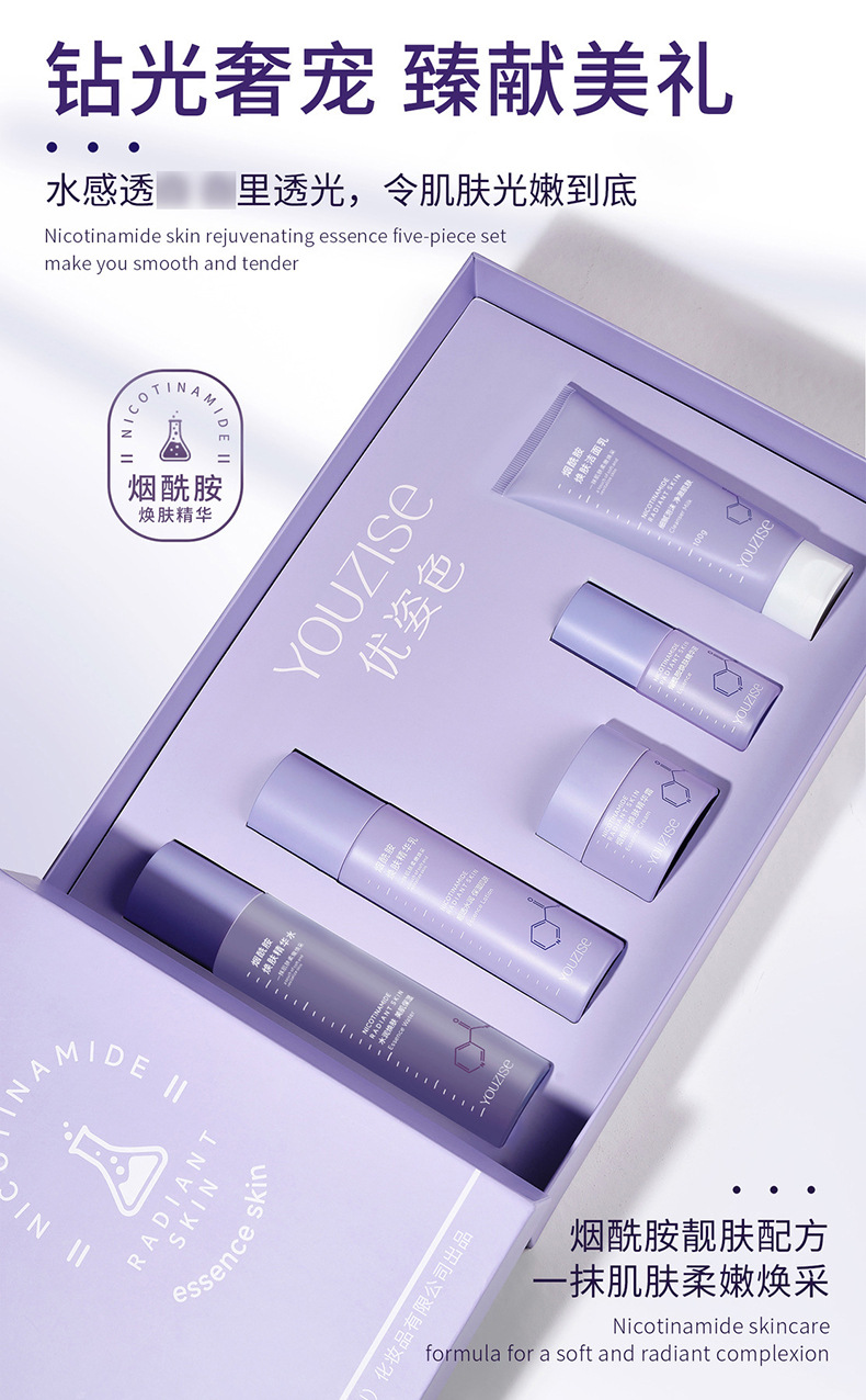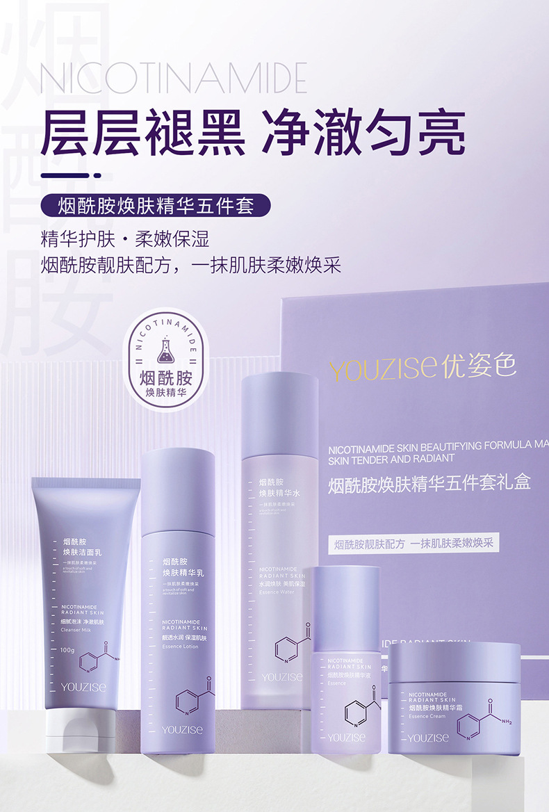 优姿色烟酰胺焕肤精华五件套礼盒水乳霜洗面奶透亮嫩肤补水保湿