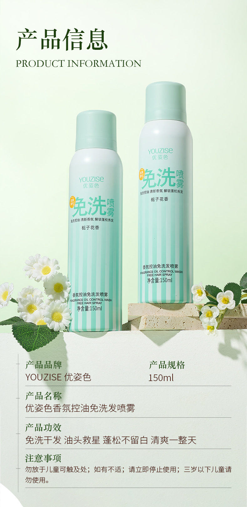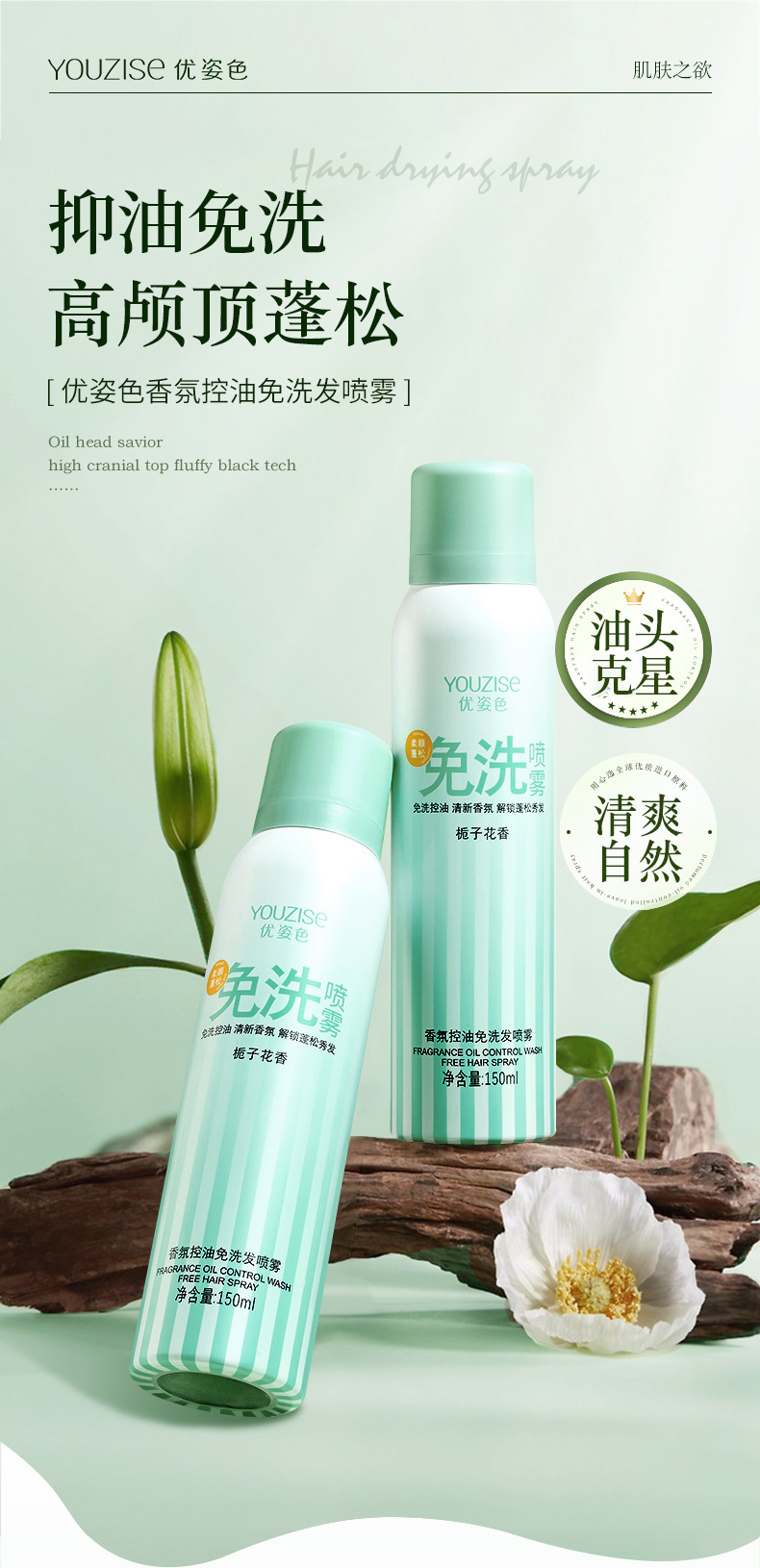 优姿色香氛控油免洗懒人免洗蓬松喷雾150ml温和定型喷雾篷松喷雾