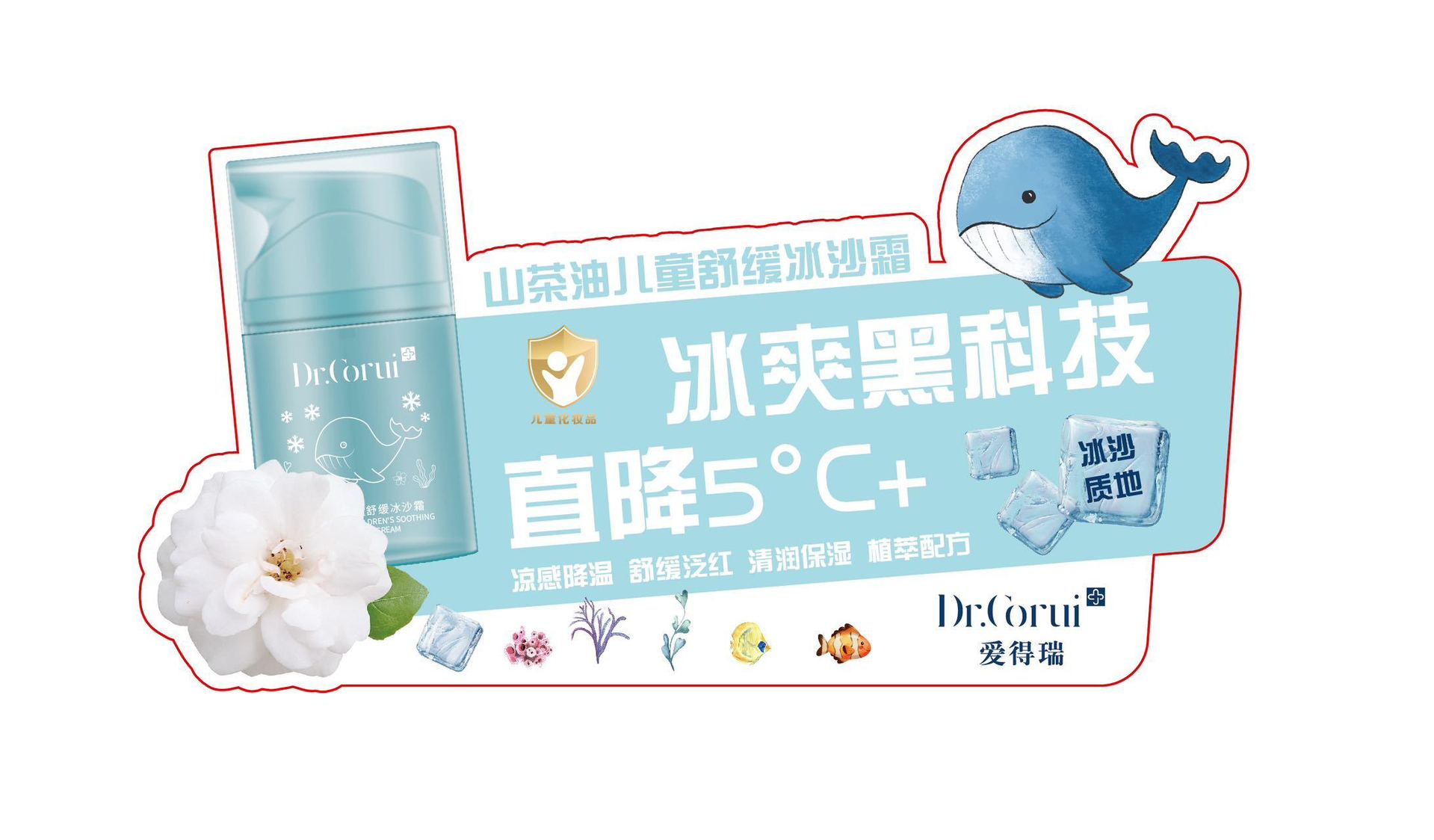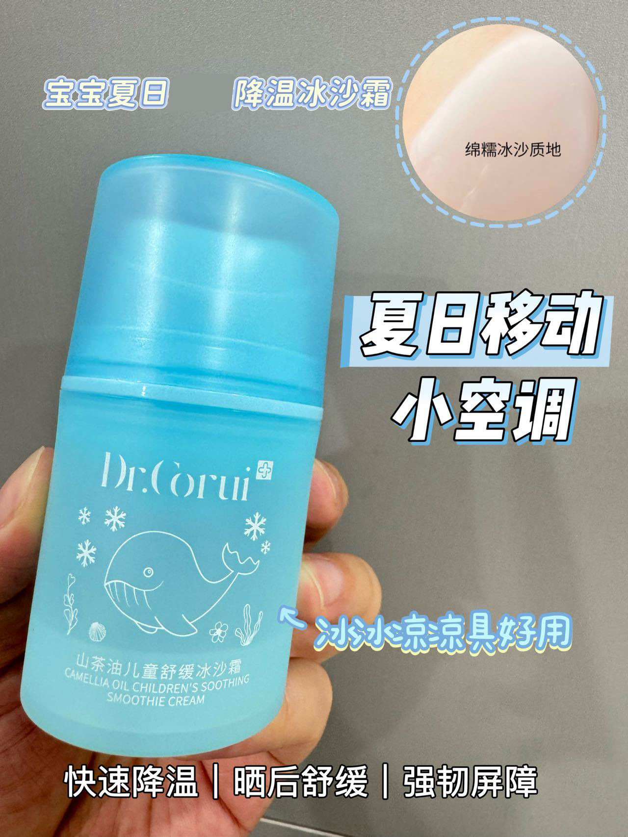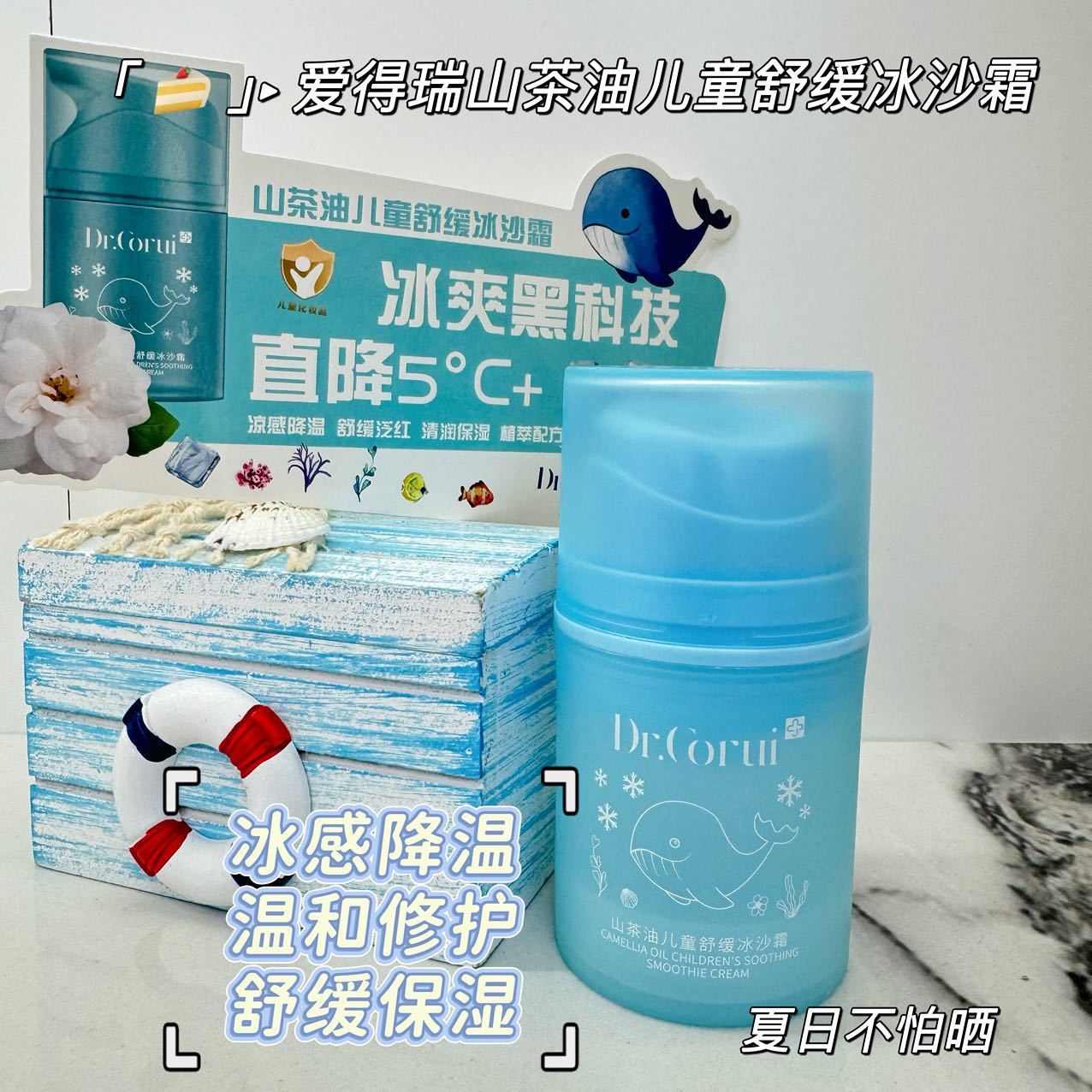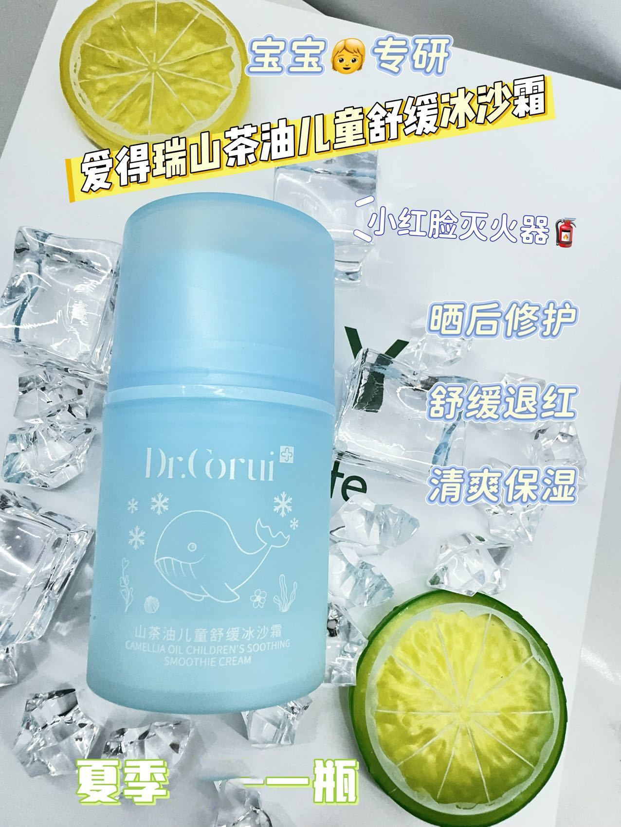 爱得瑞山茶油儿童维稳冰沙霜夏季必备冰感降温补水滋润冰沙霜50g