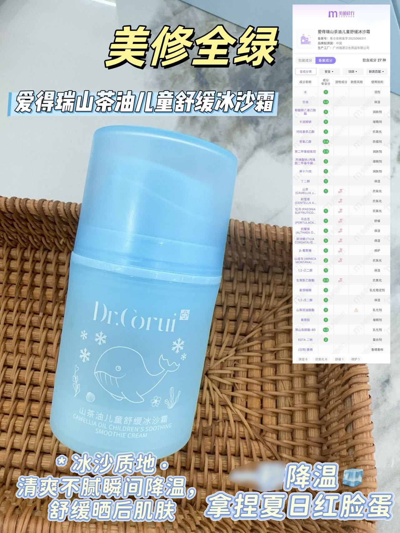 爱得瑞山茶油儿童维稳冰沙霜夏季必备冰感降温补水滋润冰沙霜50g 投诉