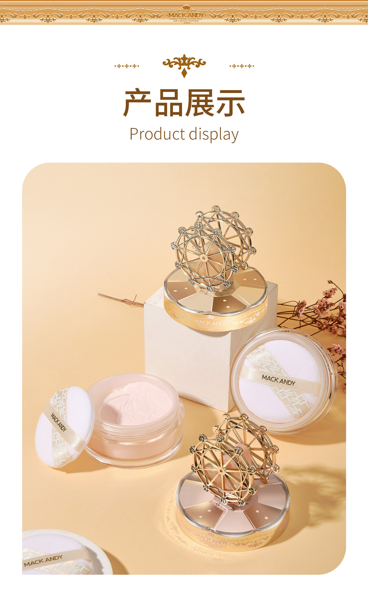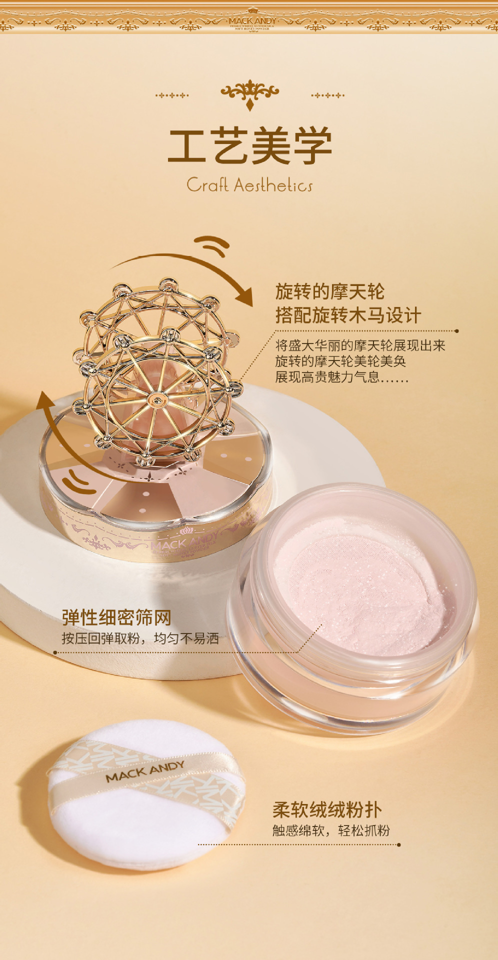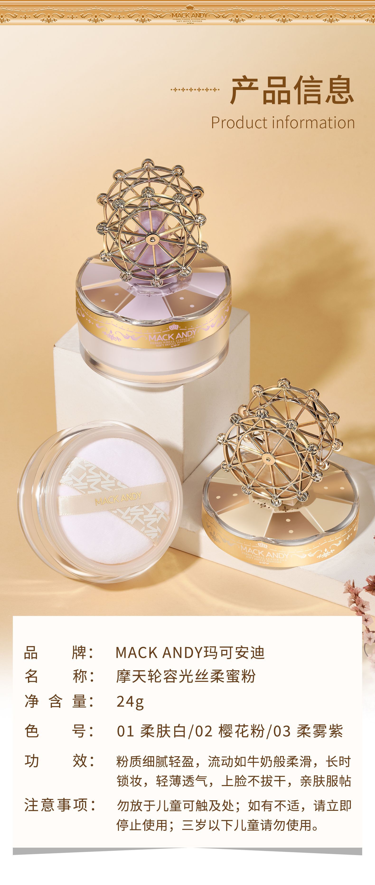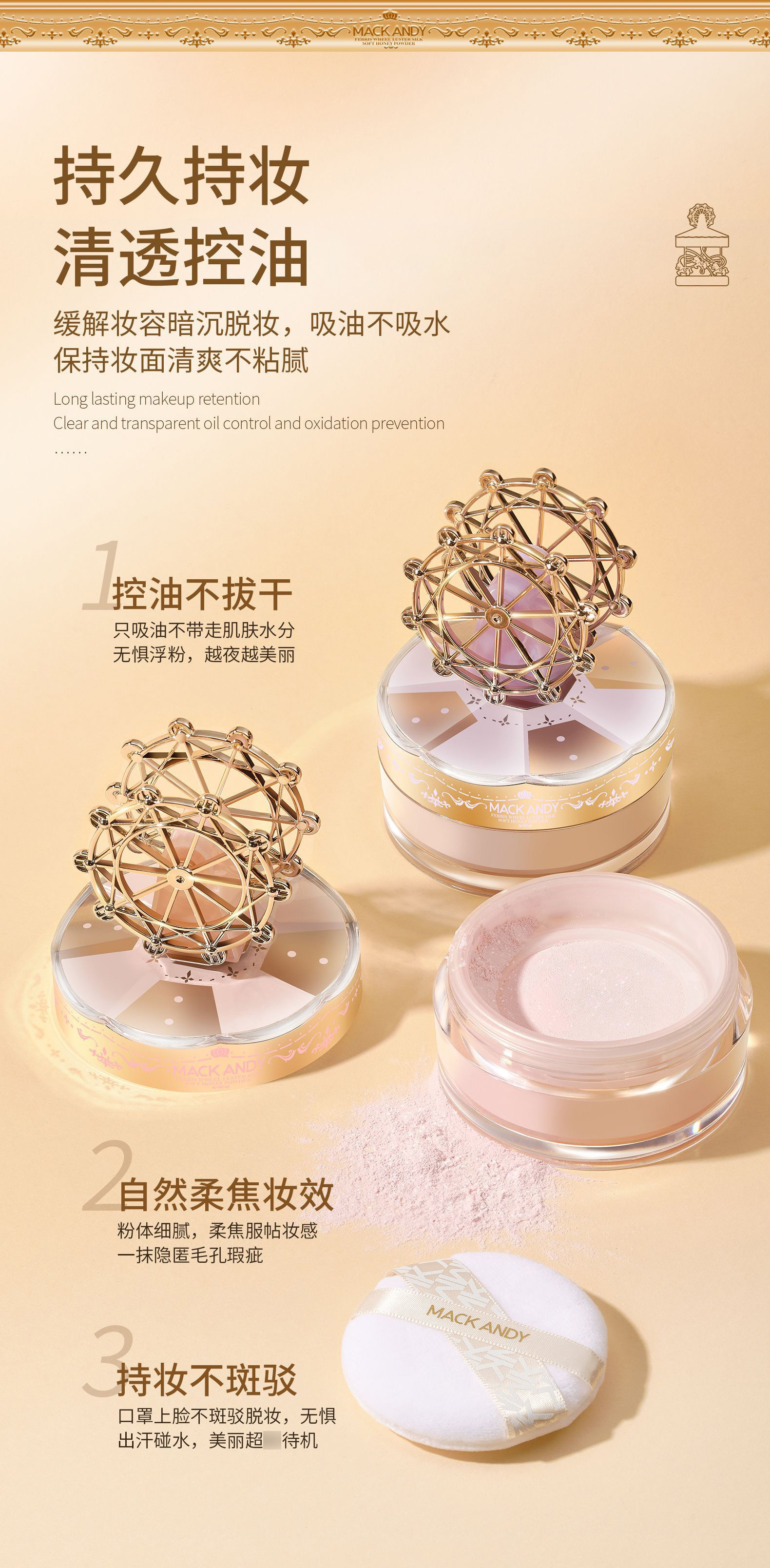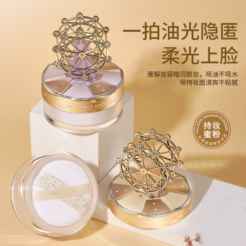 玛可安迪摩天轮容光丝柔定妆粉柔焦细腻耐水耐汗不易脱妆定妆散粉