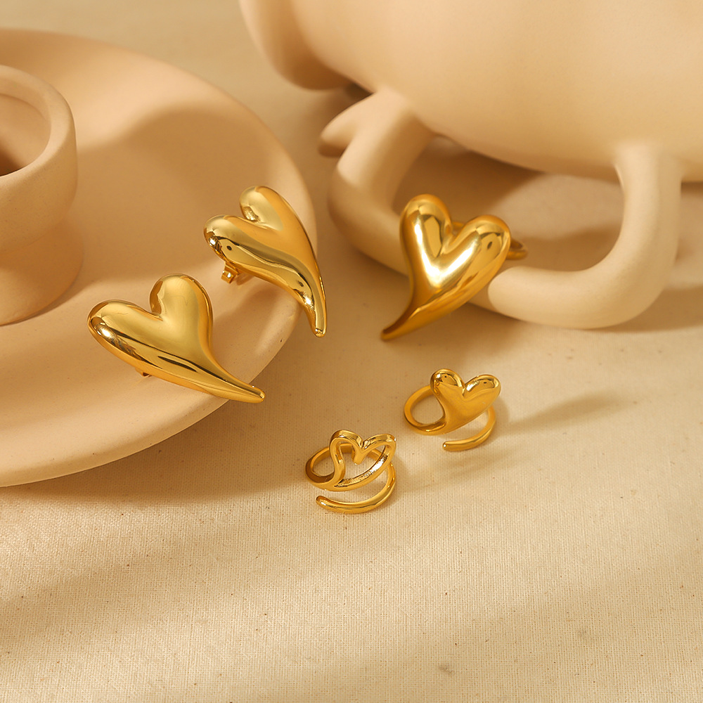 18k金不锈钢爱心戒指女轻奢高级感光面心形指尖活口钛钢戒指跨境