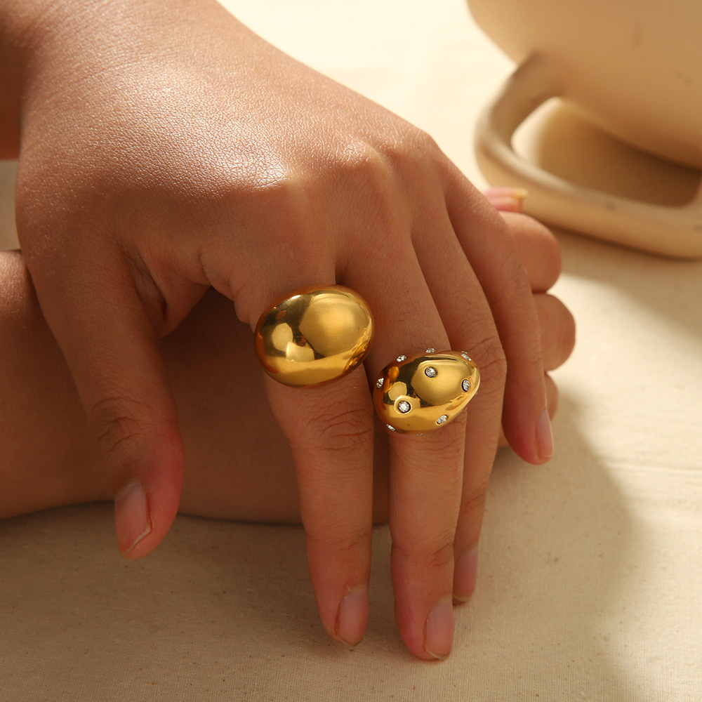 跨境热卖小众时尚设计水滴戒指18K金不锈钢几何开口戒手饰女批发