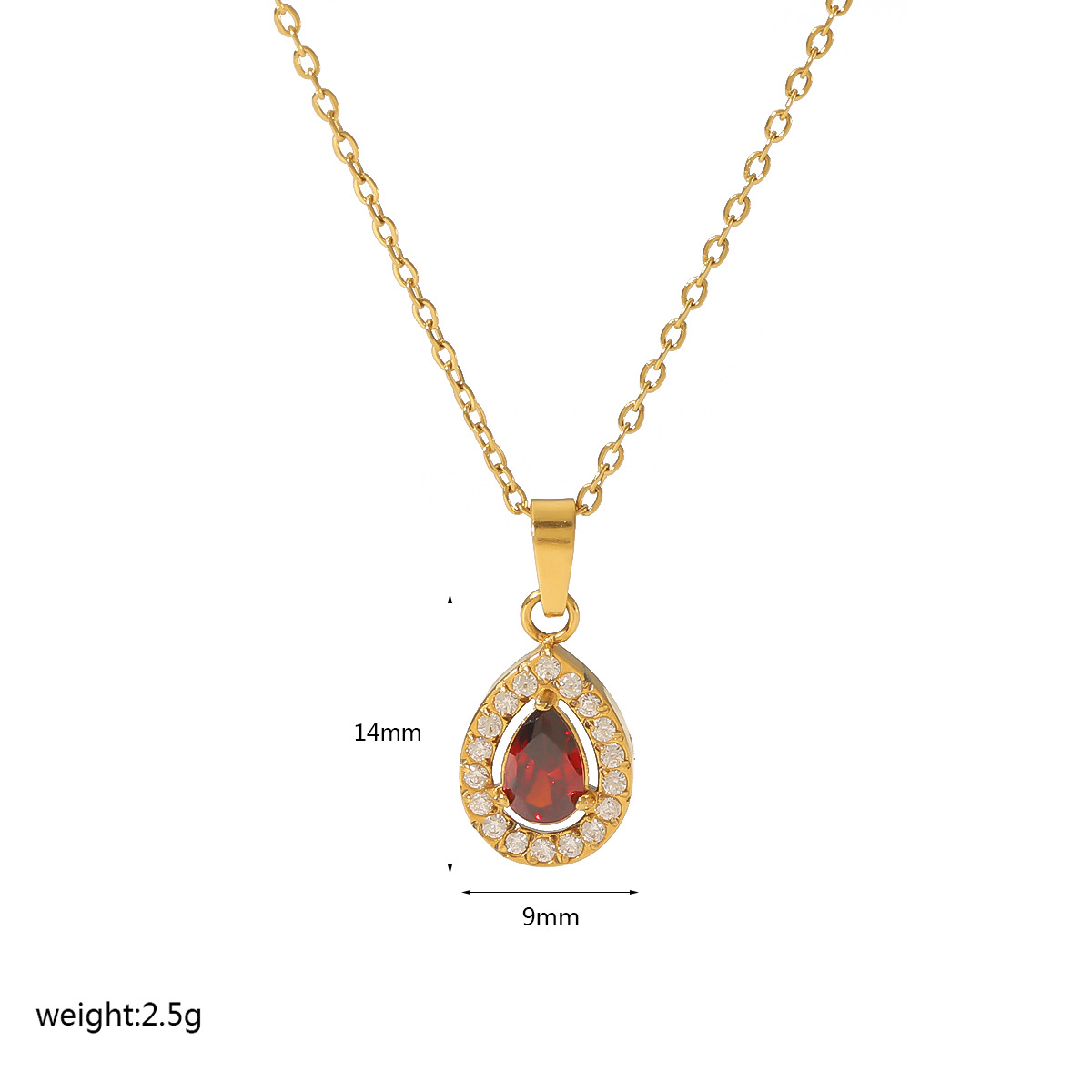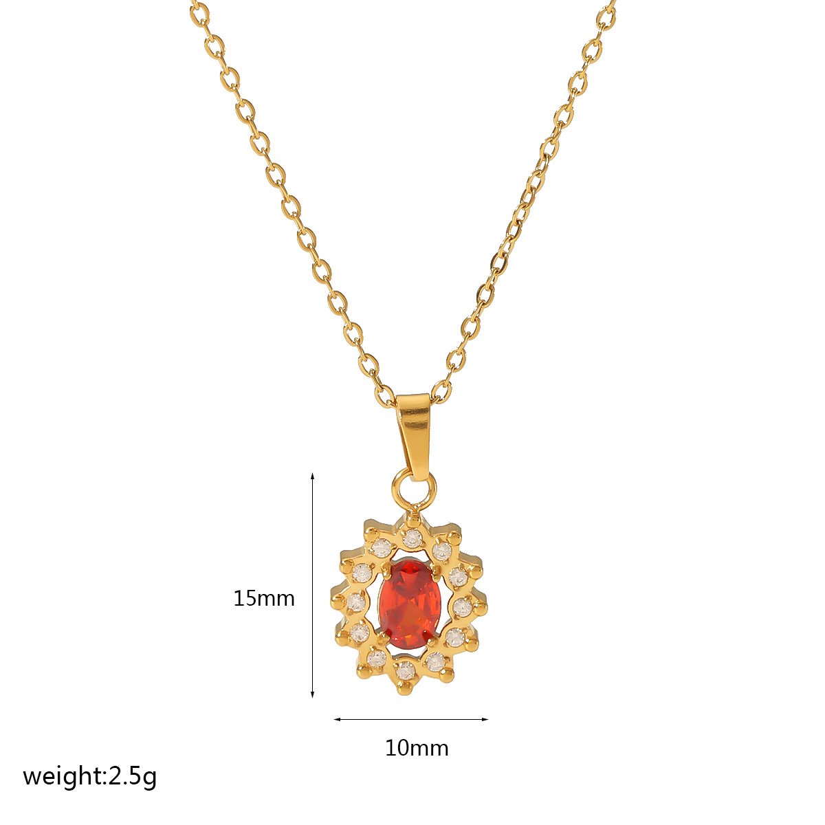 INS网红热销微镶锆石项链18K金不锈钢红宝石轻奢吊坠个性百搭 投诉