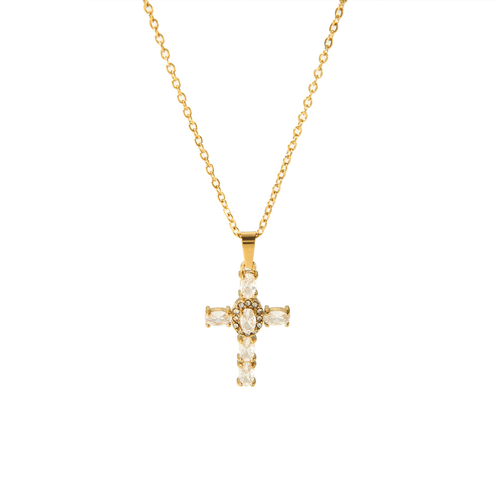 亚马逊热卖新款18K金不锈钢十字架镶锆石项链个性时尚高级感吊坠