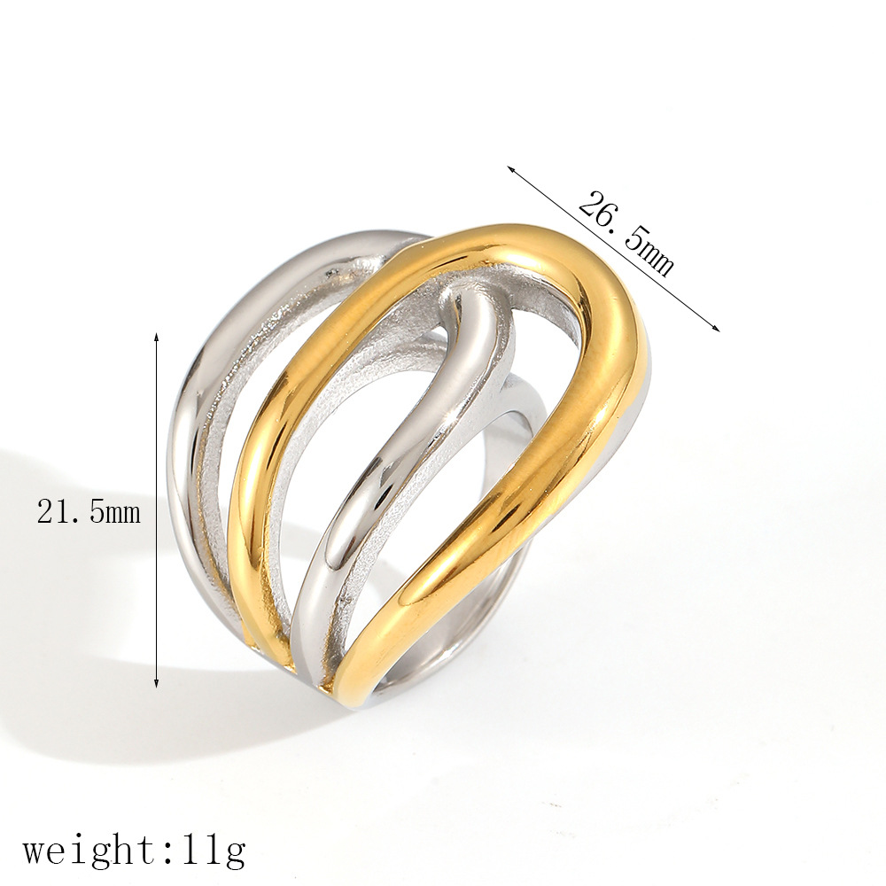 跨境欧美几何镂空钛钢戒指女时尚气质高级感金银色不锈钢戒指指环