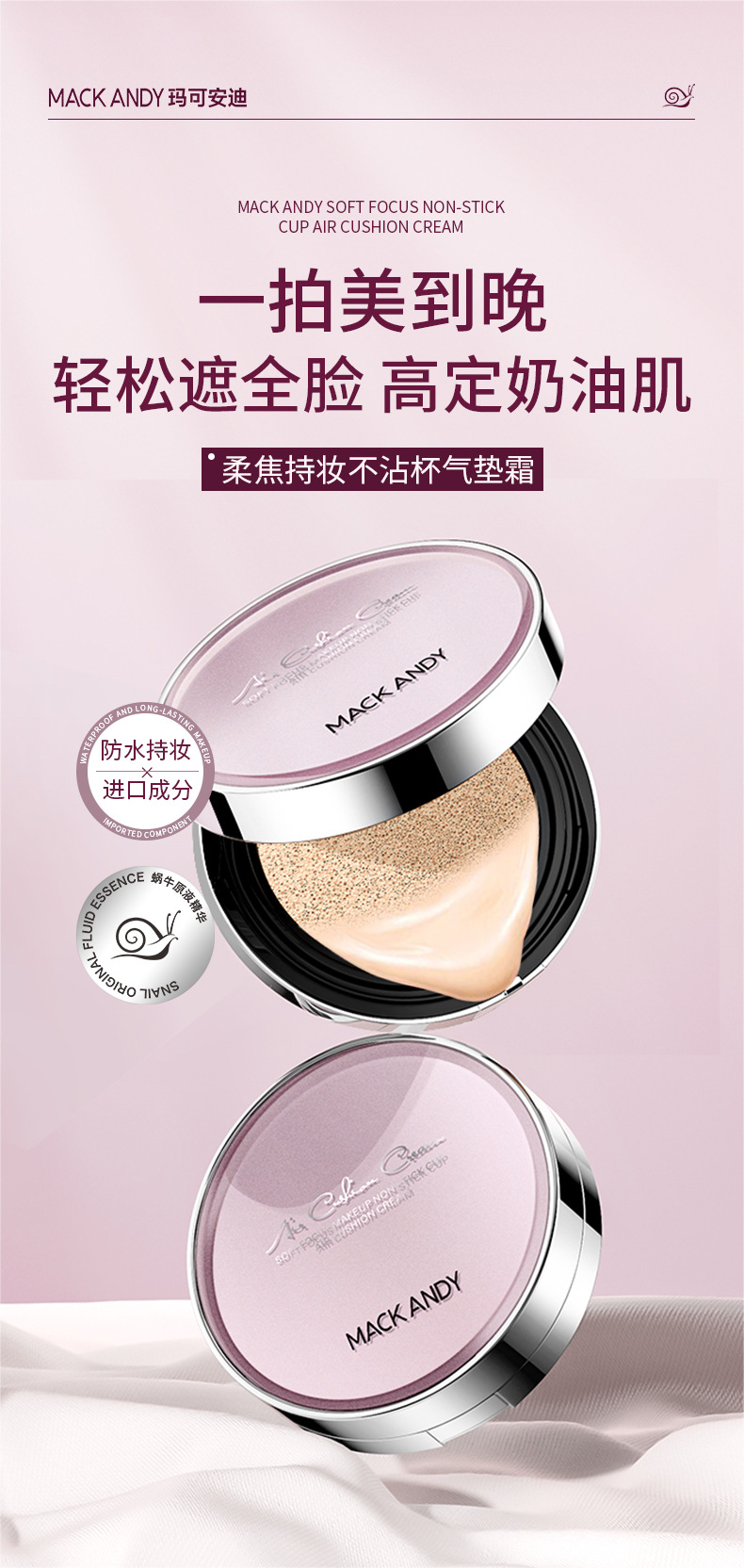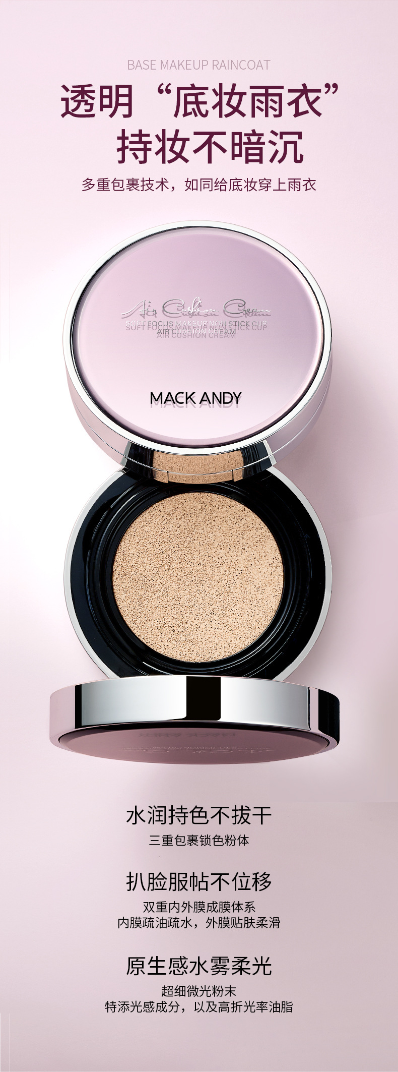 MACKANDY玛可安迪柔焦持妆不沾杯气垫bb霜遮瑕水润持久不易脱妆