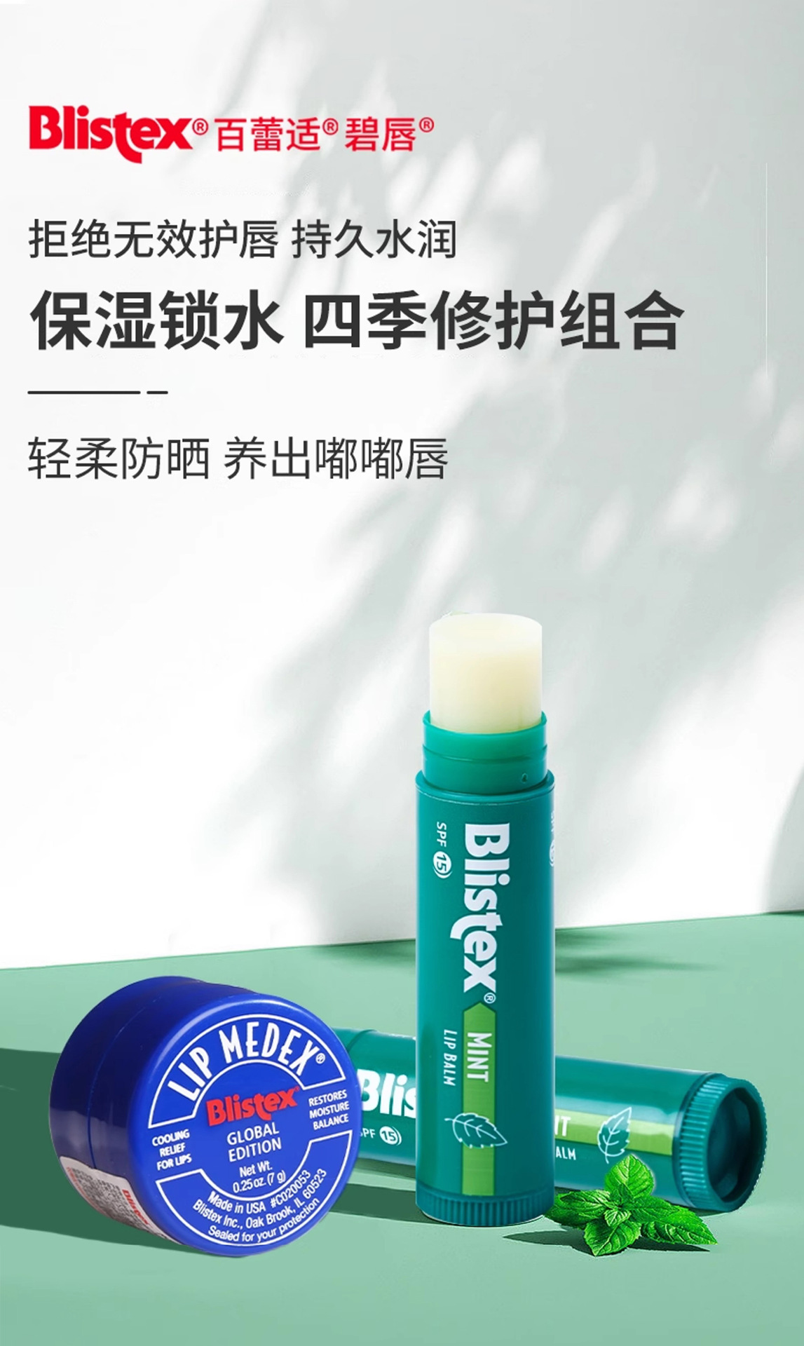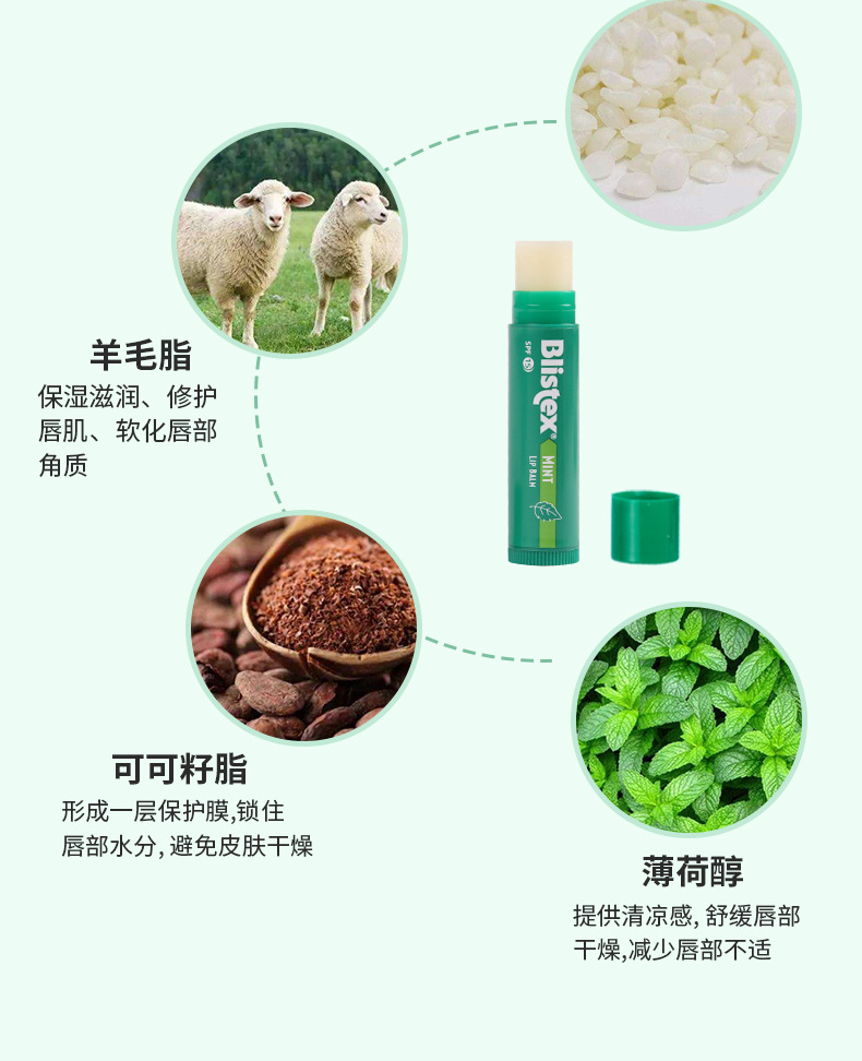 Blistex百蕾适碧唇薄荷清凉润唇膏spf15滋润男女生补水滋润唇膜