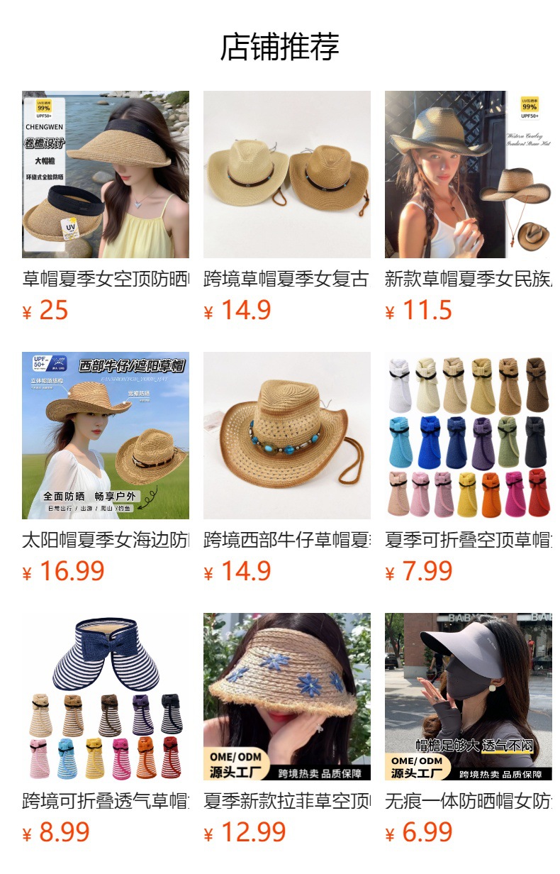 • 厂家直销!国际商贸城四区 A2区南门2楼20街 39005 ,本店商品帽子,草帽,手工帽,织带帽,大沿帽,均由现货可以少量批发,量大价格面议。本店商品均由现货可以少量批发,量大价格面议。