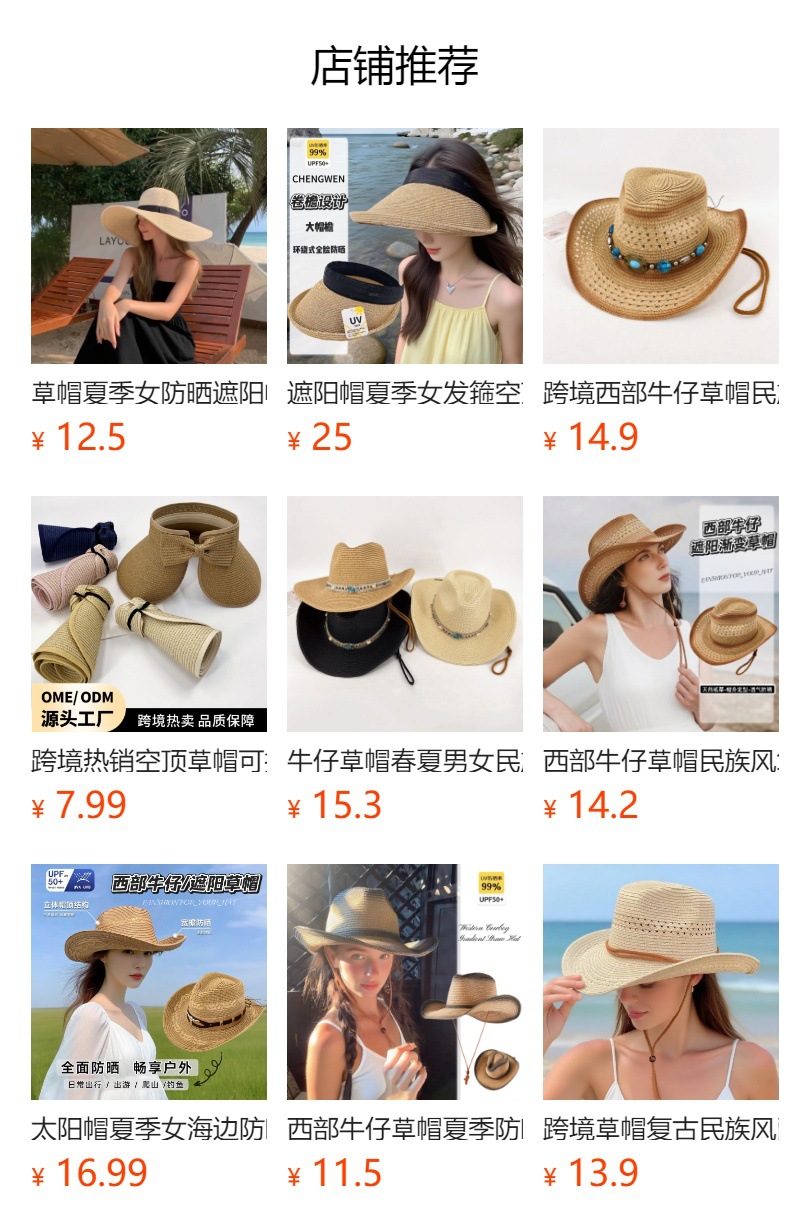 • 厂家直销!国际商贸城四区 A2区南门2楼20街 39005 ,本店商品帽子,草帽,手工帽,织带帽,大沿帽,均由现货可以少量批发,量大价格面议。本店商品均由现货可以少量批发,量大价格面议。
