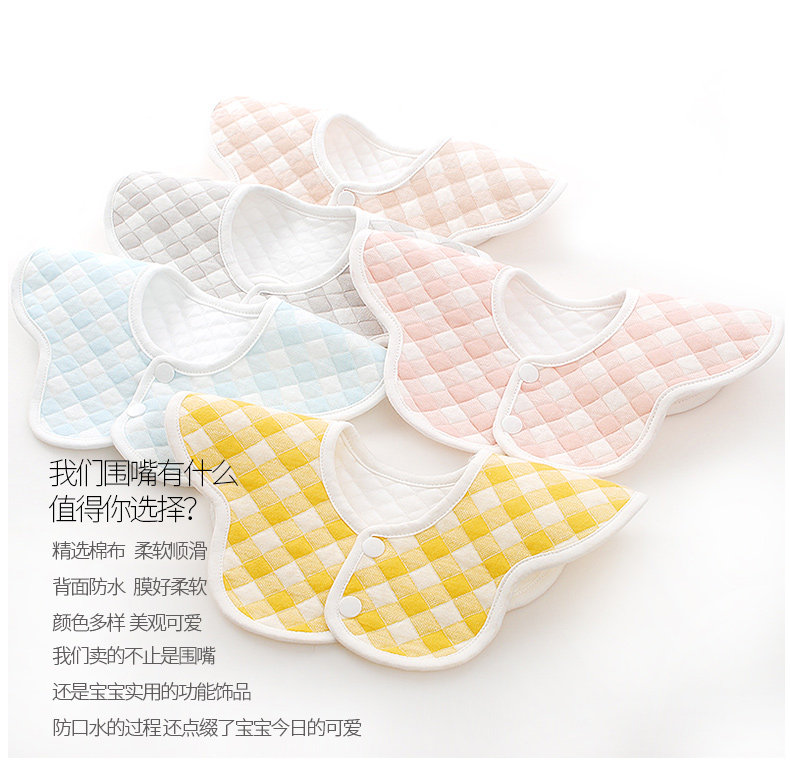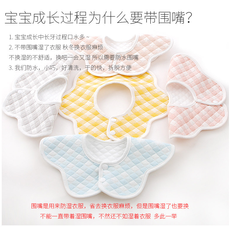 婴儿纯棉围嘴口水巾新生儿360度旋转宝宝防水防吐奶可爱围兜四季 English | 投诉