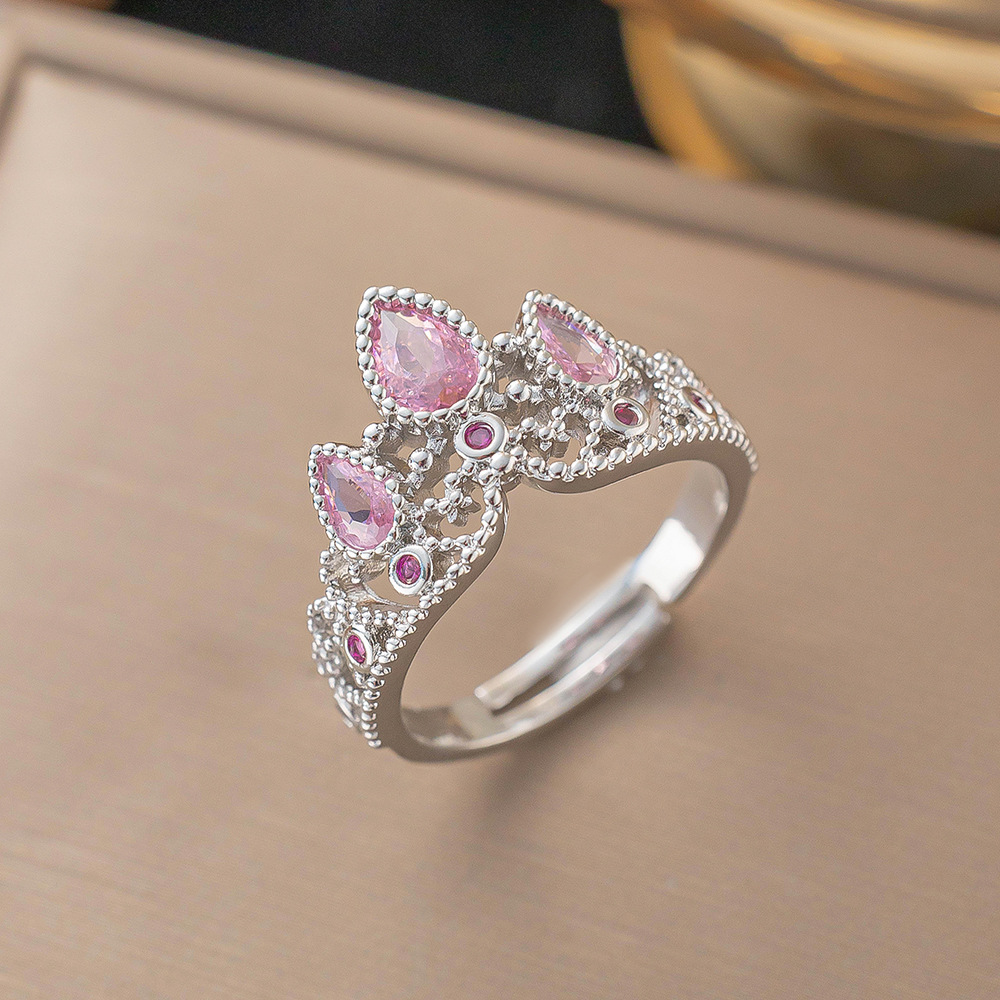 新款皇冠粉钻爱心戒指女小众高级轻奢开口可调节设计感戒指女ins 投诉
