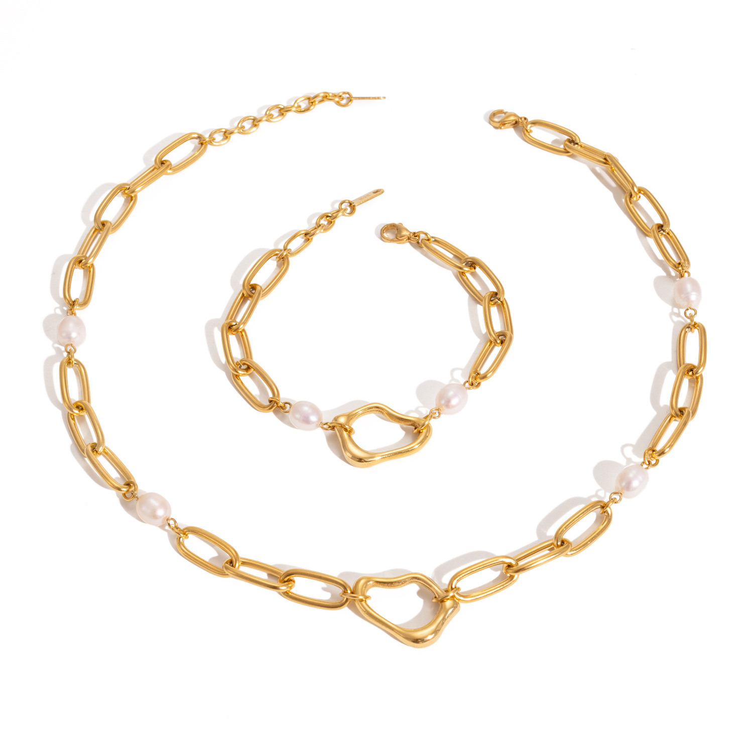 欧美首饰巴洛克珍珠项链甜酷辣妹风感锁骨链小众ins手链钛钢饰品 投诉