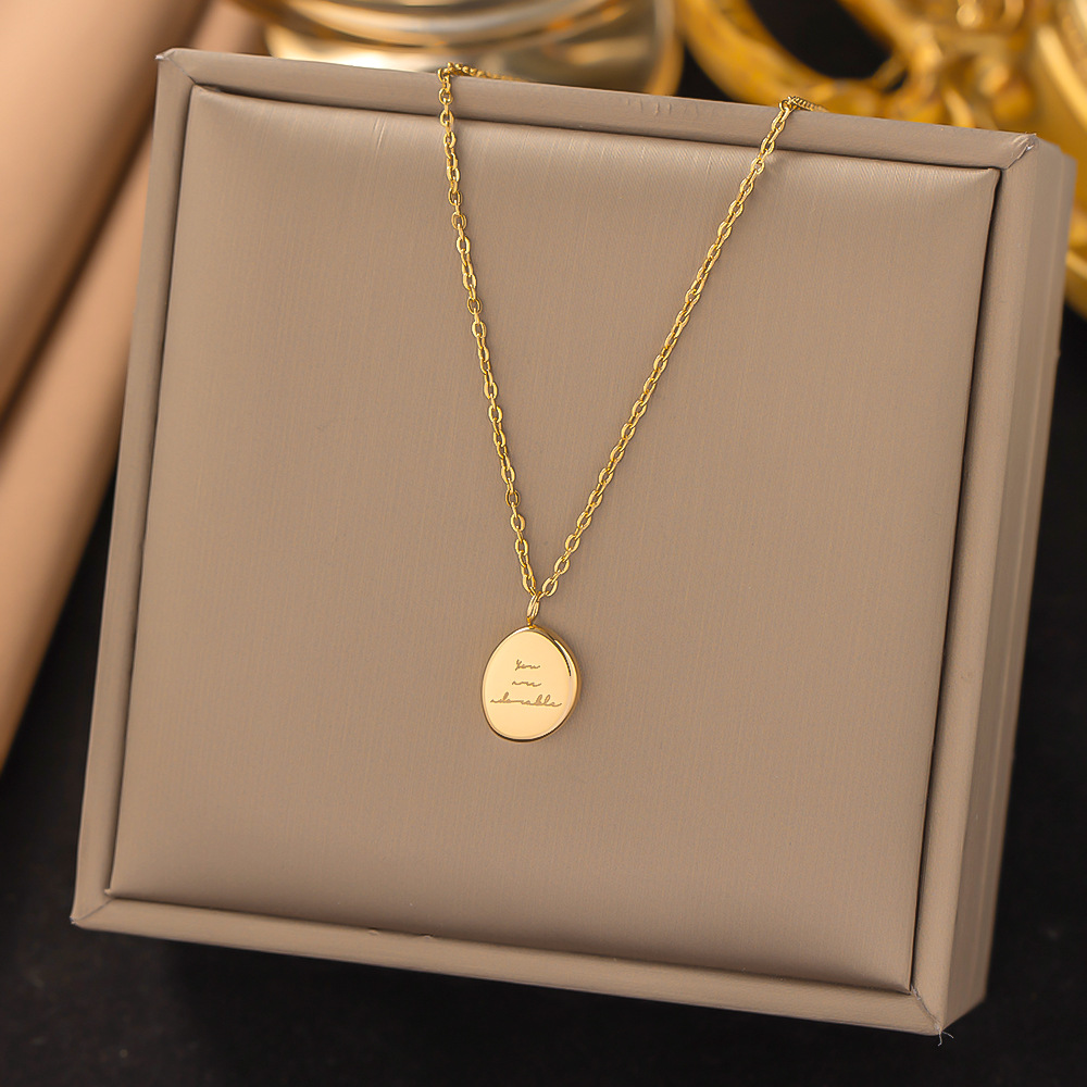 跨境批发英文字母椭圆牌钛钢不掉色项链女2023年新款高级感锁骨链